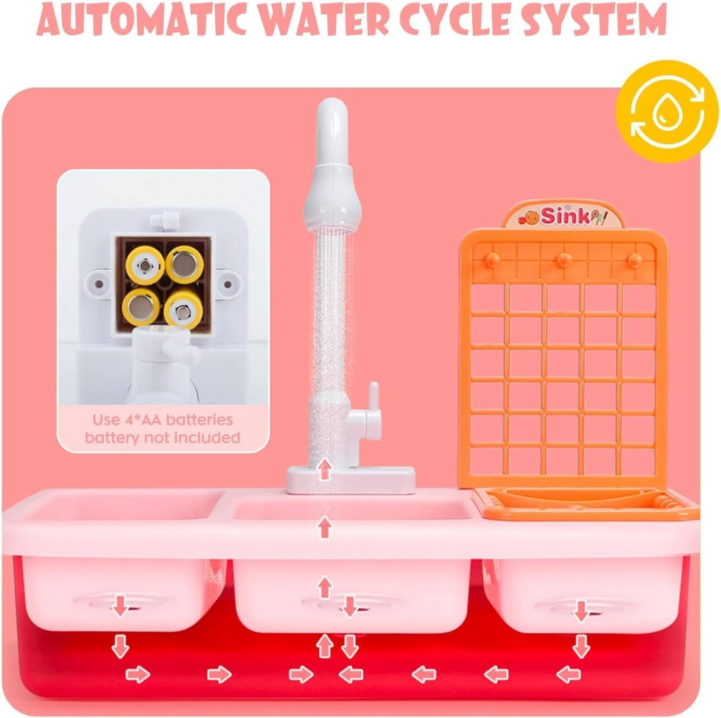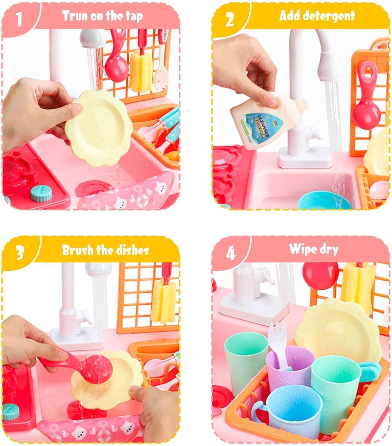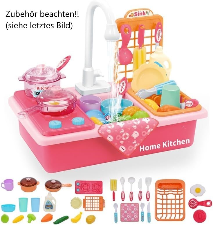 Küchenspüle Spielzeug Set mit Warmwasserhahn Farbwechsel Geschirr| Play Kochherd, Kochgeschirr Topf und Pfanne, Play Food, Farbwechsel Geschirr Zubehör für Kleinkinder