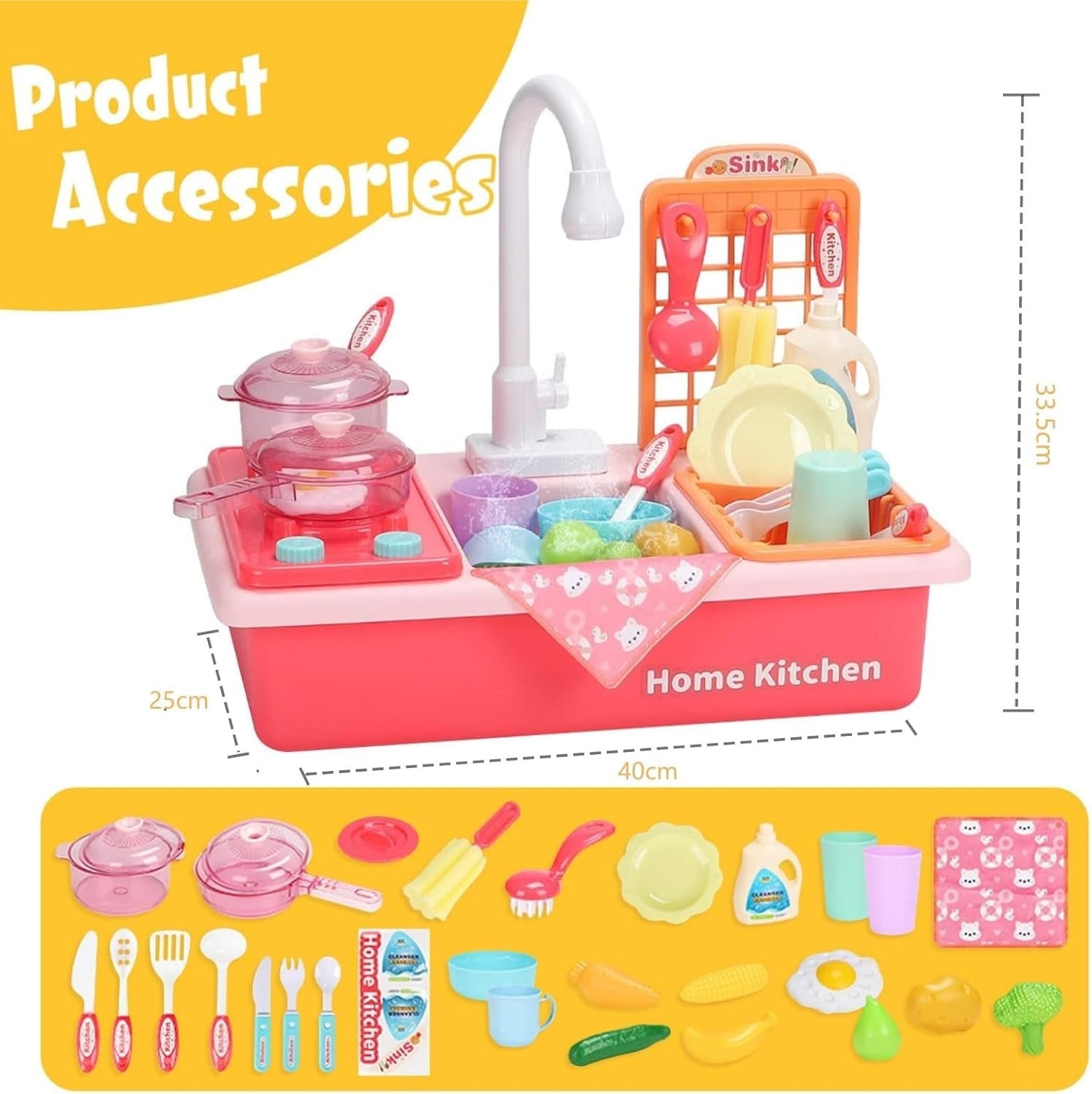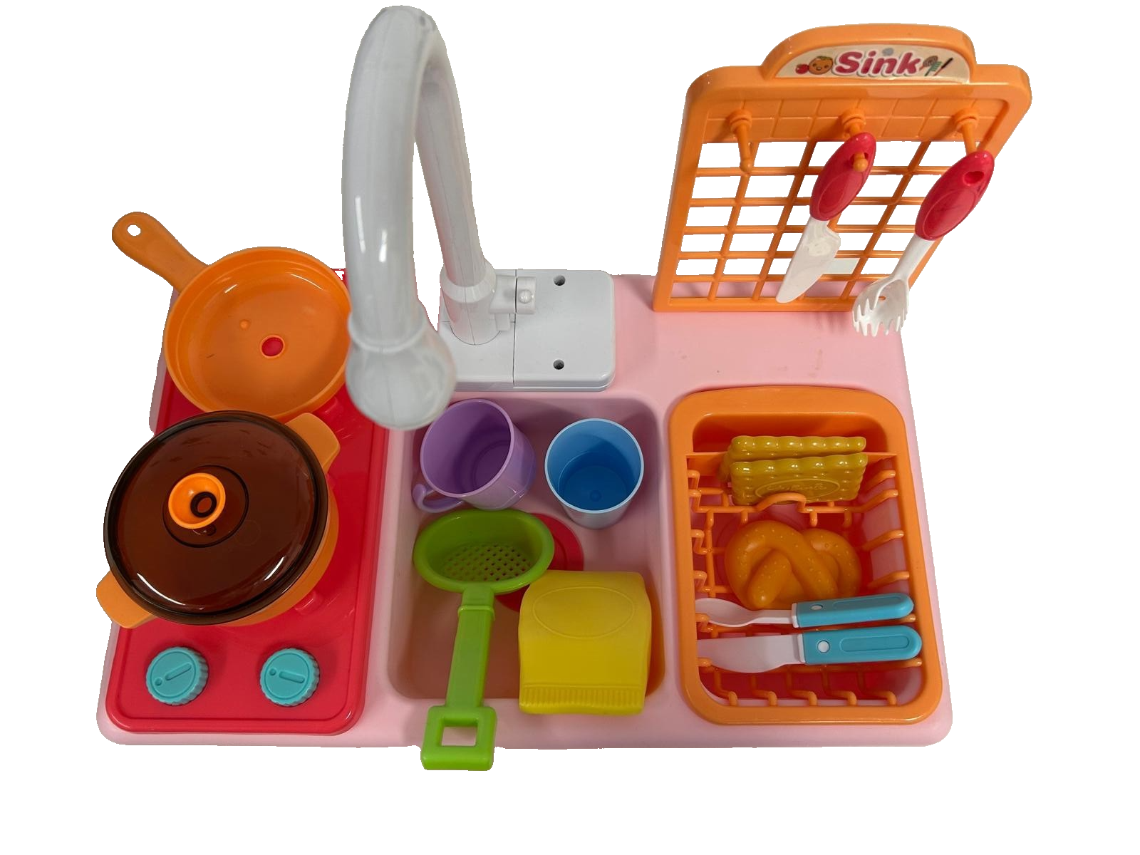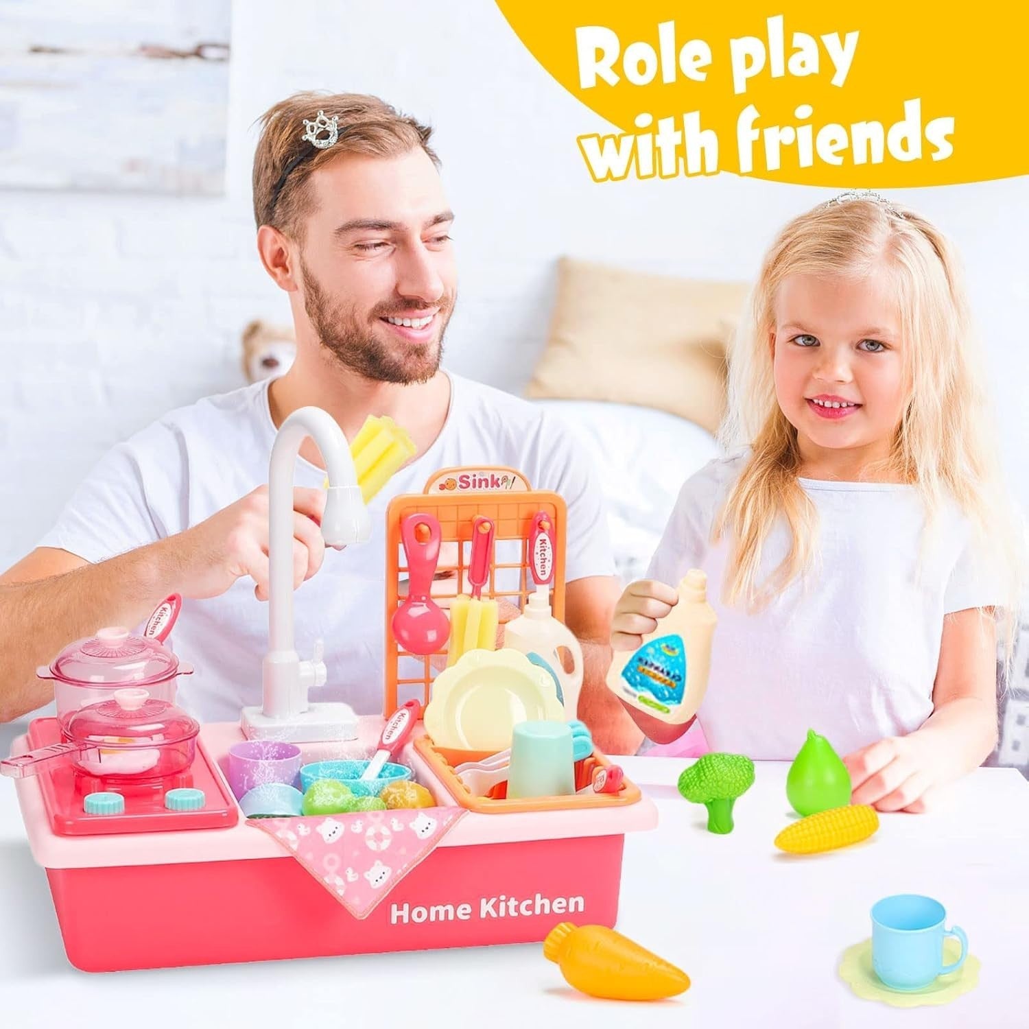 Küchenspüle Spielzeug Set mit Warmwasserhahn Farbwechsel Geschirr| Play Kochherd, Kochgeschirr Topf und Pfanne, Play Food, Farbwechsel Geschirr Zubehör für Kleinkinder