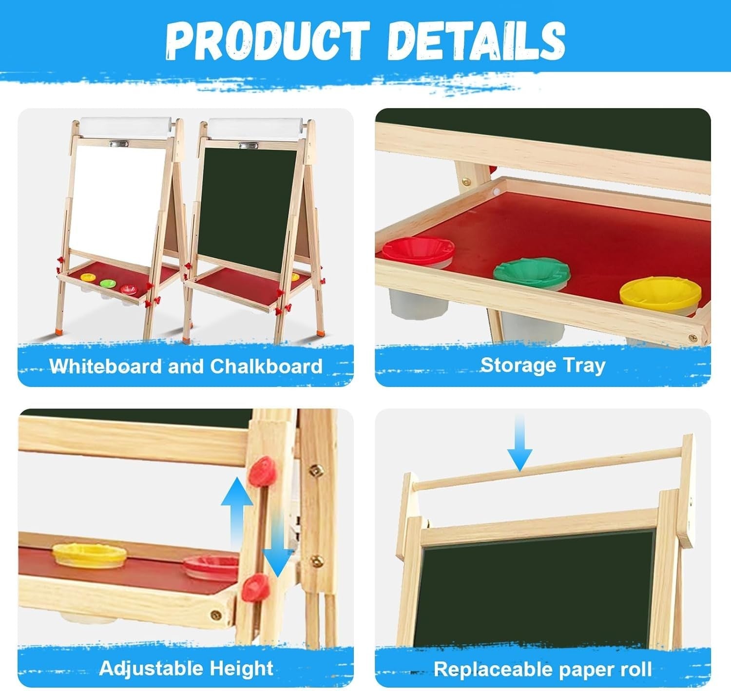 - CPSC-zertifiziertes sicheres und höhenverstellbares Design – Hergestellt aus splitterfreier neuseeländischer Kiefer, verfügt dieses Kleinkind-Zeichenbrett über abgerundete Ecken und ungiftige Beschichtungen. Die Staffelei für Kinder lässt sich stufenlos von 68,6 cm bis 114,3 cm verstellen, um Vorschüler und Vorschüler zu passen, mit einem verstärkten Boden, der für Stabilität beim energetischen Spielen sorgt.