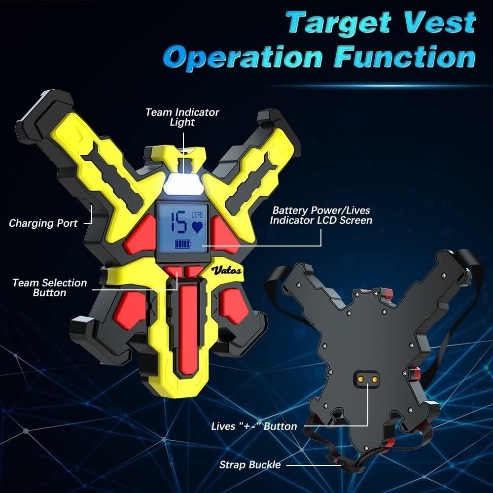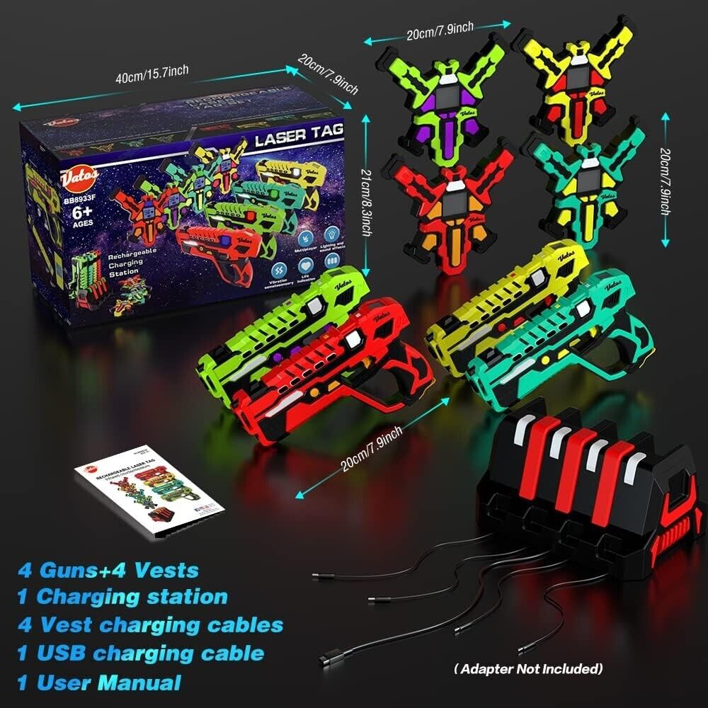 Wiederaufladbares Laser Tag Set 4 – VATOS Laser Tag Pistolen mit 4er Set mit Westen | Infrarot Pistolen Set Spiel für Kinder Teenager Erwachsene Familiengruppe Drinnen Draussen Garten Aktivität