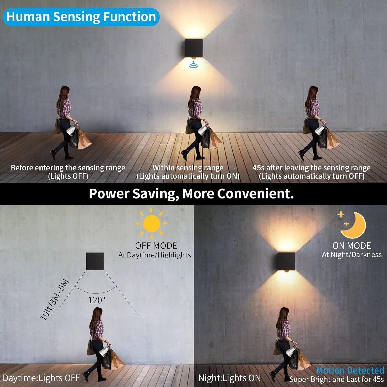 • 【Bewegungsmelder】 LED Innenwandleuchte und Aussenwandlichter fügen Bewegungsmelder und iterative Upgrades von Produkten hinzu. Erkennt menschliche Bewegungen und schaltet die wandlichter automatisch ein und aus. Automatisches Ausschalten während des Tages, automatisches Einschalten in der Umgebung mit wenig Licht (Nacht) innerhalb des Erkennungsbereichs von 3-5 Metern, Bewegungsmelder Wandlampe automatisches Ausschalten wenn 1 Minute lang keine Aktion erfolgt.