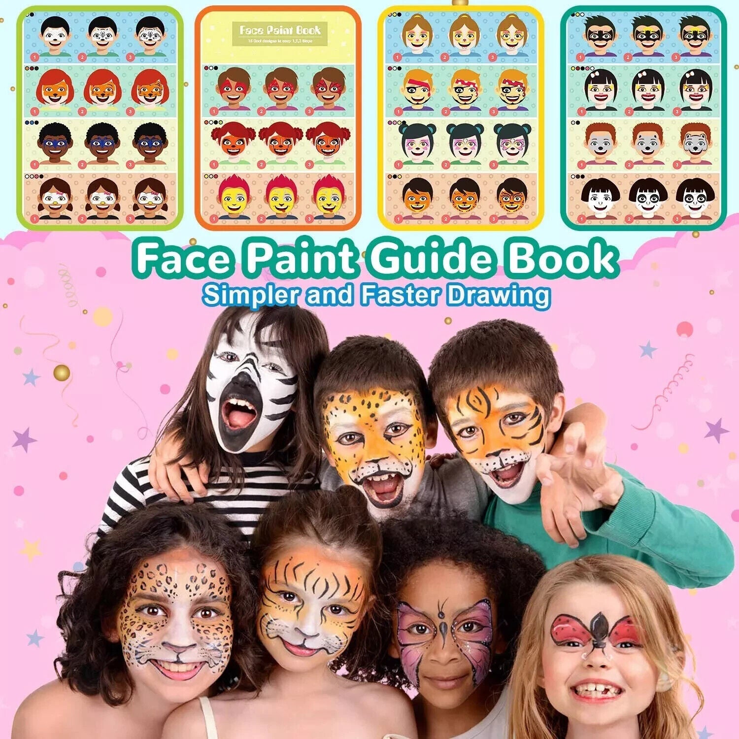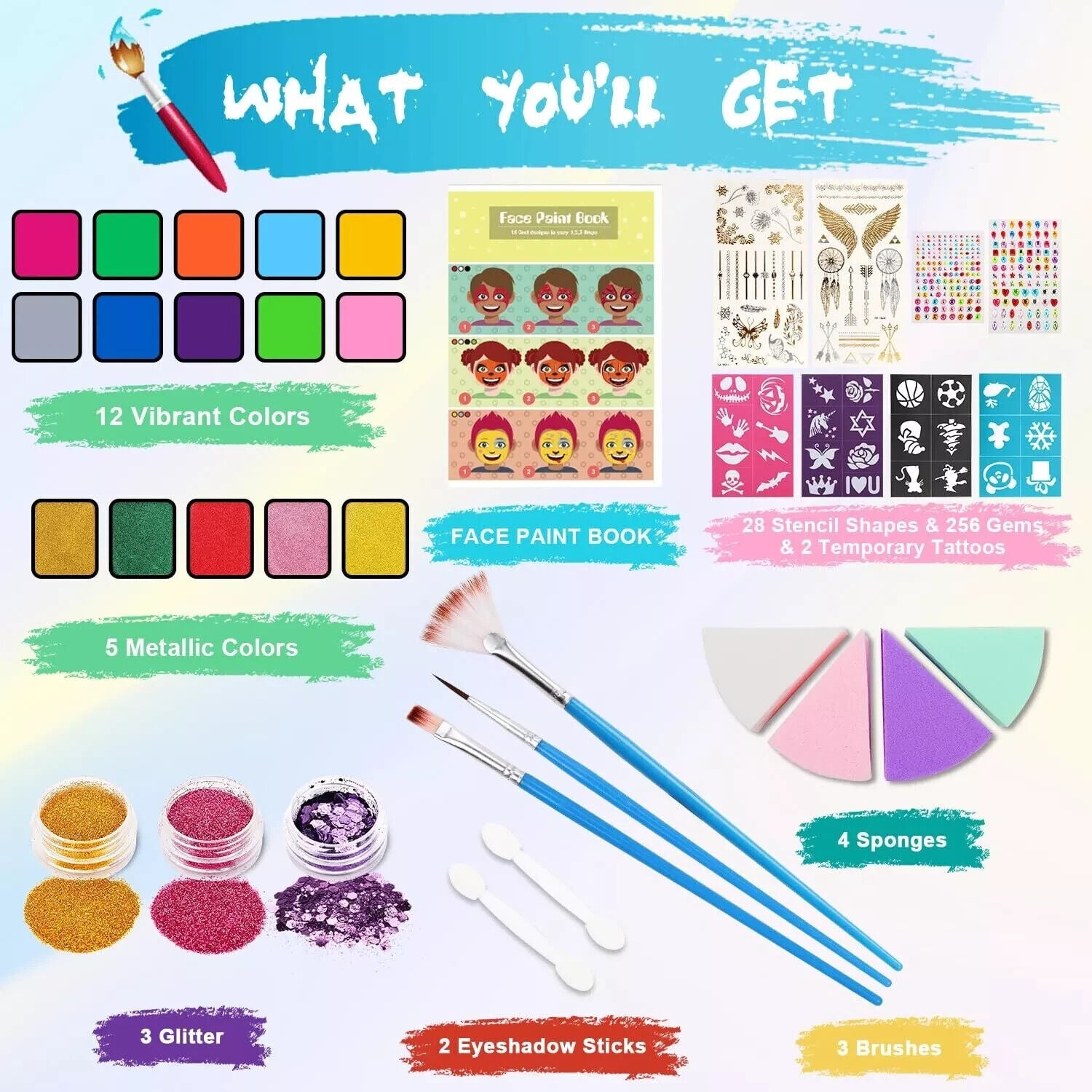 Lenbest Kinderschminke Set - Schminke Kinder 17 Farben Glitzer Pinsel Schablonen