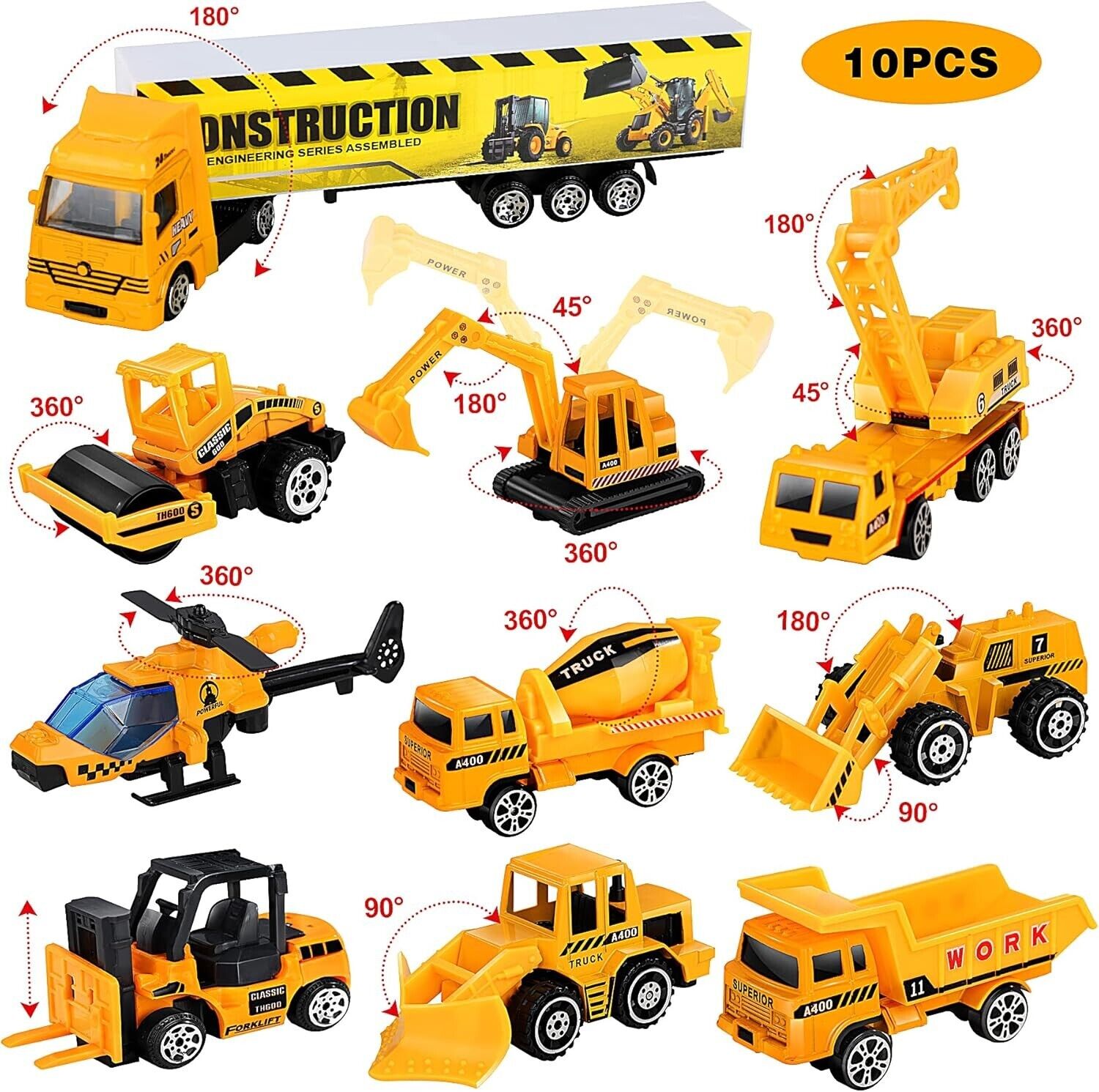 - 【12 in 1 Baufahrzeug-Set】- Unser Spielzeugset enthält 11 kleine Baufahrzeuge in verschiedenen Formen und große Baufahrzeuge, die kleine Fahrzeuge aufnehmen können. Jedes kleine Baufahrzeug ist 1:1 in der Form eines echten Baufahrzeugs wiederhergestellt und hat die gleiche Funktion: Sie können das kleine Fahrzeug schieben oder die Details darauf drehen, und die Größe jedes Baufahrzeugspielzeugs ist für Kinderhände geeignet.