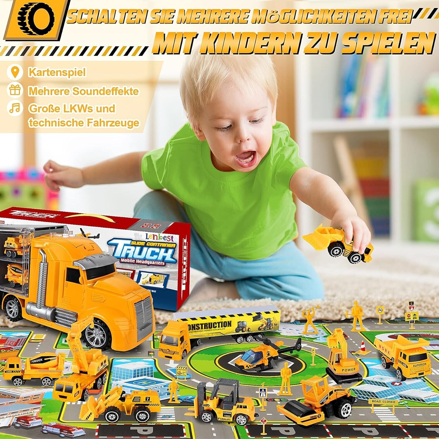 Lenbest LKW Auto Spielzeug - Bagger Spielzeug Baufahrzeug - 11 in 1 Kinder