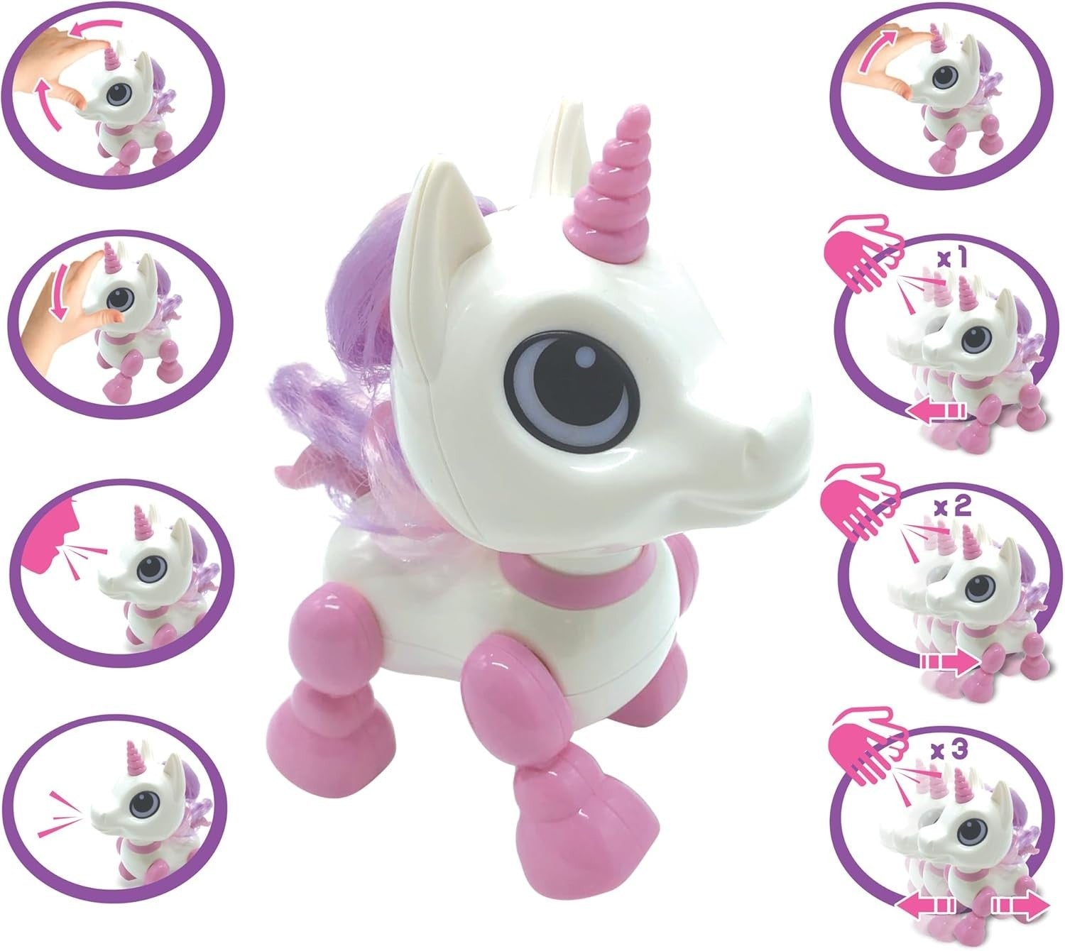 Lexibook Power Unicorn Mini - Mein kleines Roboter-Einhorn - Roboter-Einhorn mit Geräuschen, Musik, Lichteffekten, Sprachwiederholung und Klangreaktion, Kinderspielzeug (Mädchen) - ROB02UNI
