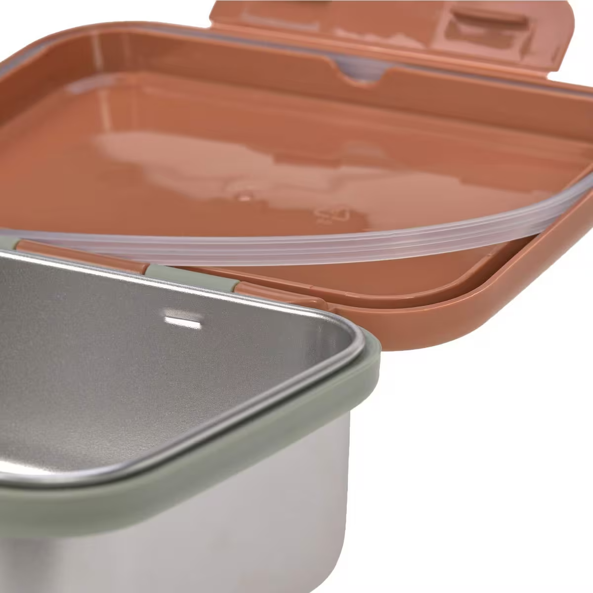 Material: Deckel: 100% Polypropylen (mit Silikonring), Behälter: 100% Edelstahl