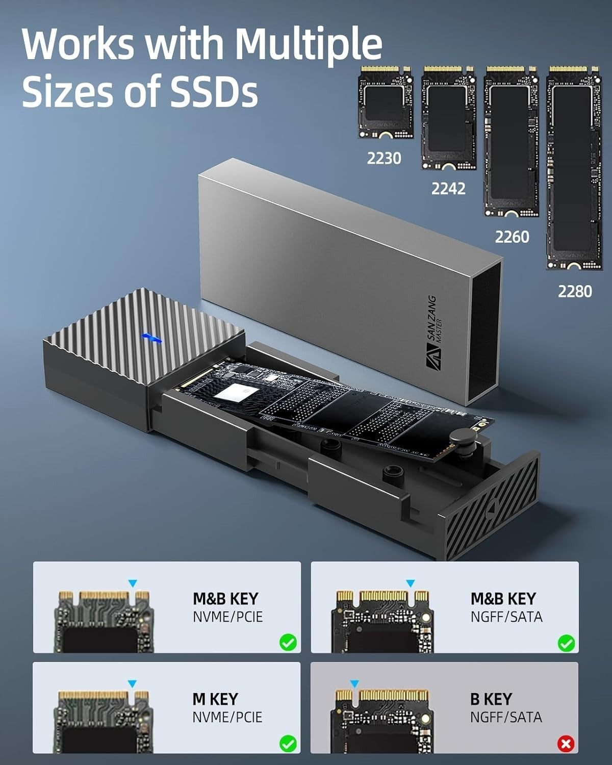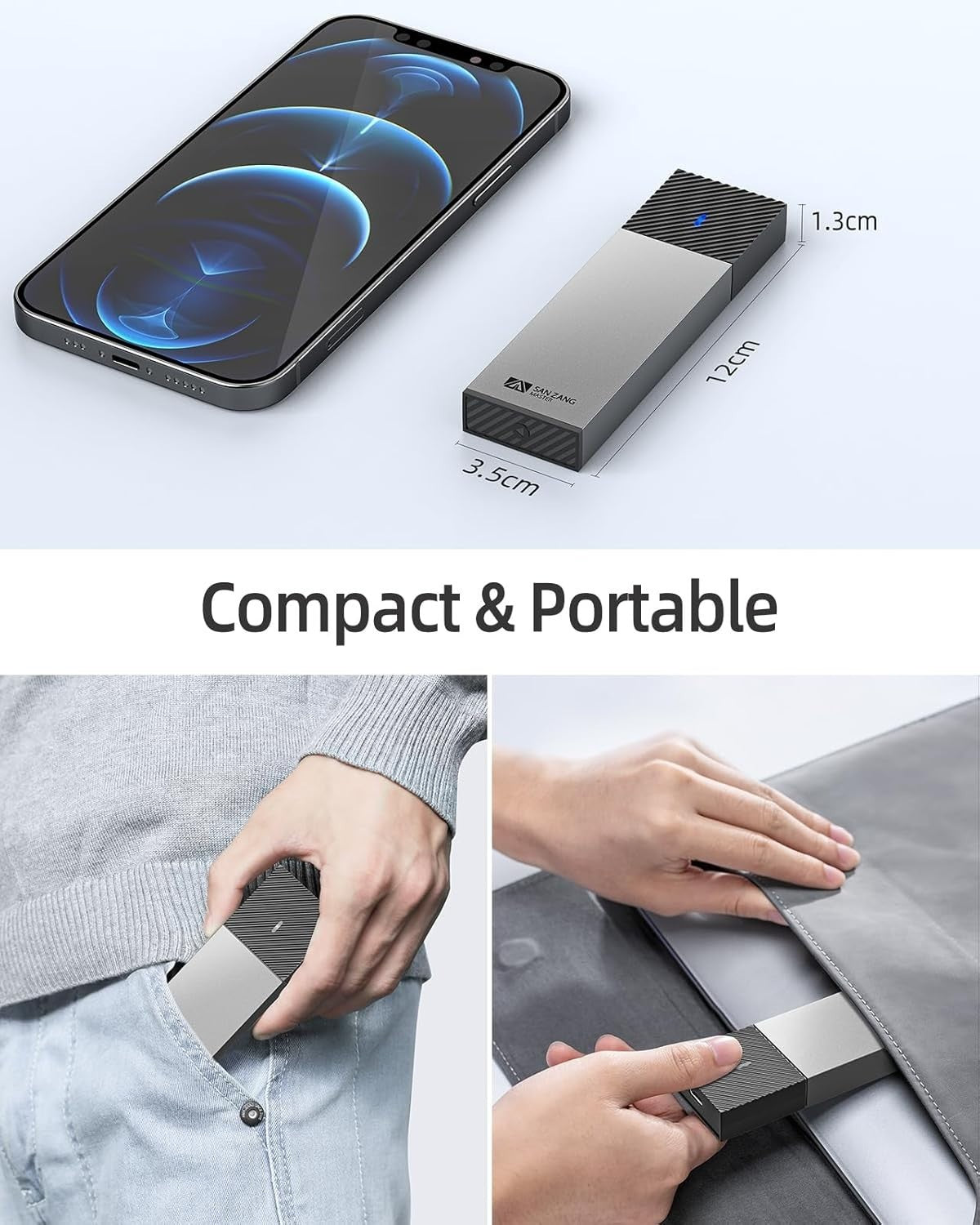 - 【Tragbares Design】 Mit seinem ultraschlanken Aluminium- und ABS-Material vereint das SANZANG NVMe SSD-Gehäuse Eleganz und Tragbarkeit. Sein leichtes Design ermöglicht einen einfachen Transport und eine bequeme Nutzung in verschiedenen Umgebungen, ob zu Hause, im Büro oder auf Reisen.