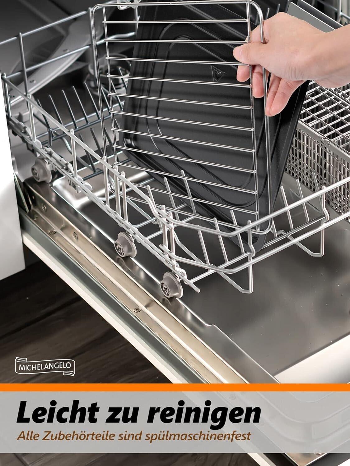 - Verschiedene Zubehörteile und Rezepte im Lieferumfang enthalten: Der Michelangelo air friteuse wird mit allem Zubehör, das Sie für die Zubereitung einer Vielzahl von Lebensmitteln benötigen: Silikonhandschuh, Rotisserie-Gabel, Rotisserie-Korb, Käfigzange, Netzkorb, Drahtgitter und Abtropfschale. Beginnen Sie jetzt mit dem Michelangelo Air Fryer Ofen wie ein Profi