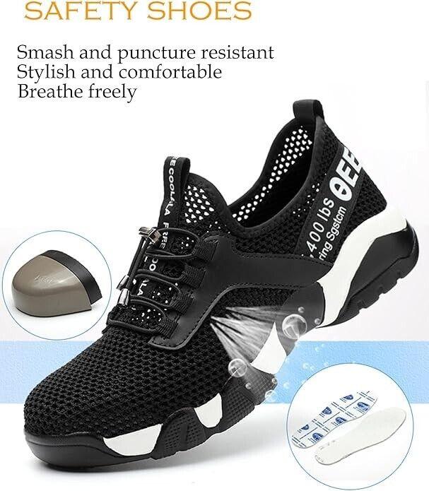 - Leicht und verschleißfest: Unsere Sicherheitsschuhe sind mit einer leichten und weichen PU-Luftpolstersohle und einem atmungsaktiven Mesh-Obermaterial ausgestattet, wodurch sie atmungsaktiver, bequemer, rutschfester und langlebiger sind als herkömmliche Arbeitssicherheitsschuhe.