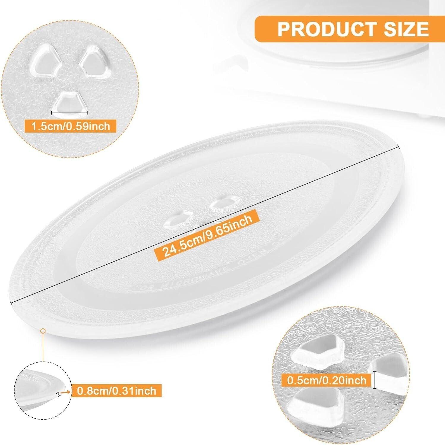Mikrowellenteller Glas 24,5cm, Mikrowelle Drehteller Ersatz, Glasdrehteller Drehscheibe, Glasteller für Mikrowelle, Drehteller Drehscheibe Teller Glasteller, mit 3 Noppen für Mikrowellen