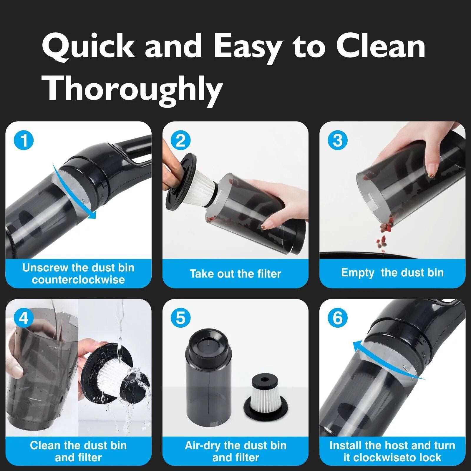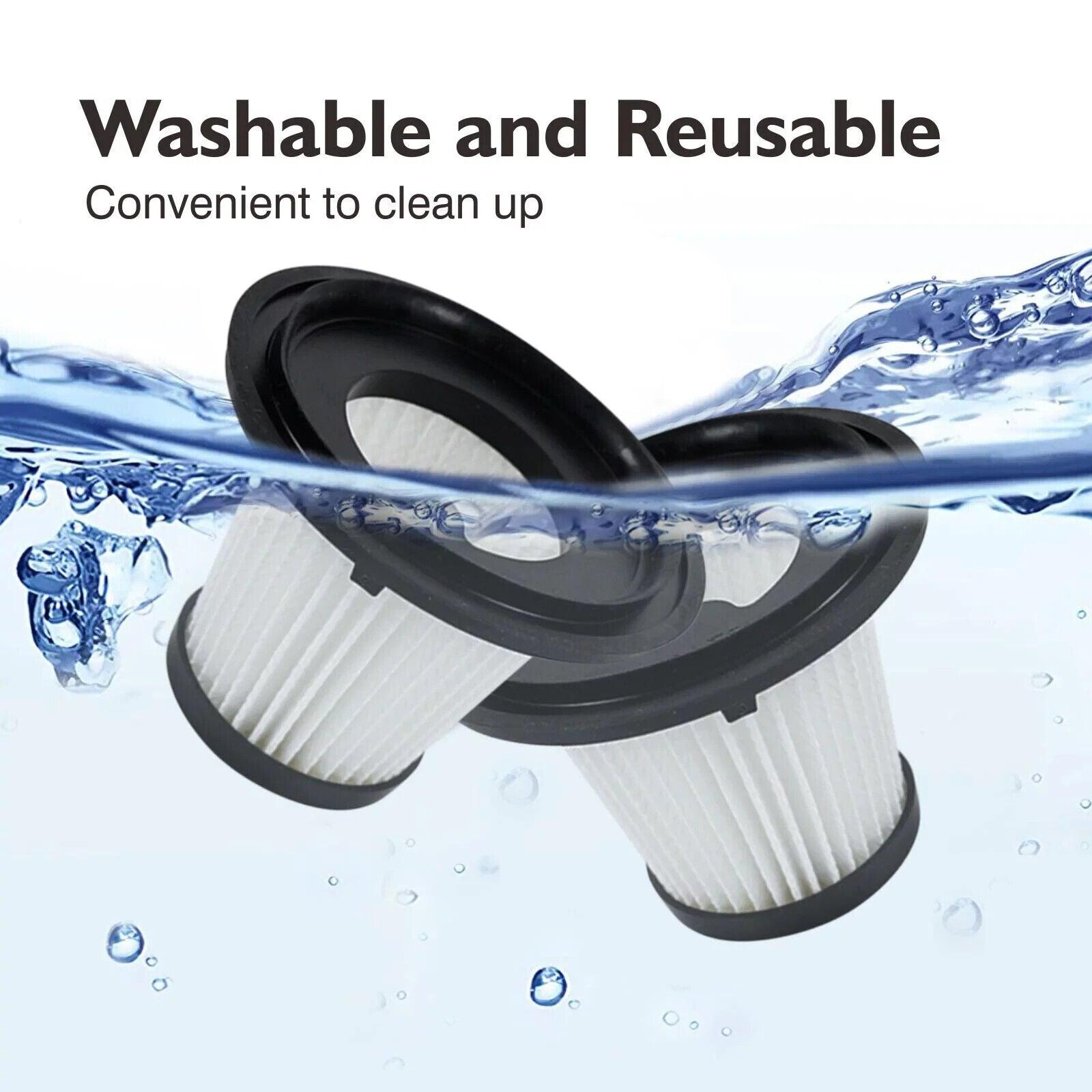 • 【HEPA-Filter】 Wir liefern einen HEPA-Filter und einen Edelstahlfilter in diesen kabellosen Mini-Staubsauger. Der abnehmbare und waschbare HEPA-Filter kann mehrere Filtervorgänge durchführen und mehr als 99,99 % der Mikropartikel auffangen. Der Edelstahlfilter kann große Partikel wie Staub und Haare herausfiltern, die Lebensdauer des HEPA-Filters verlängern und die Reinigung des Filters erleichtern.