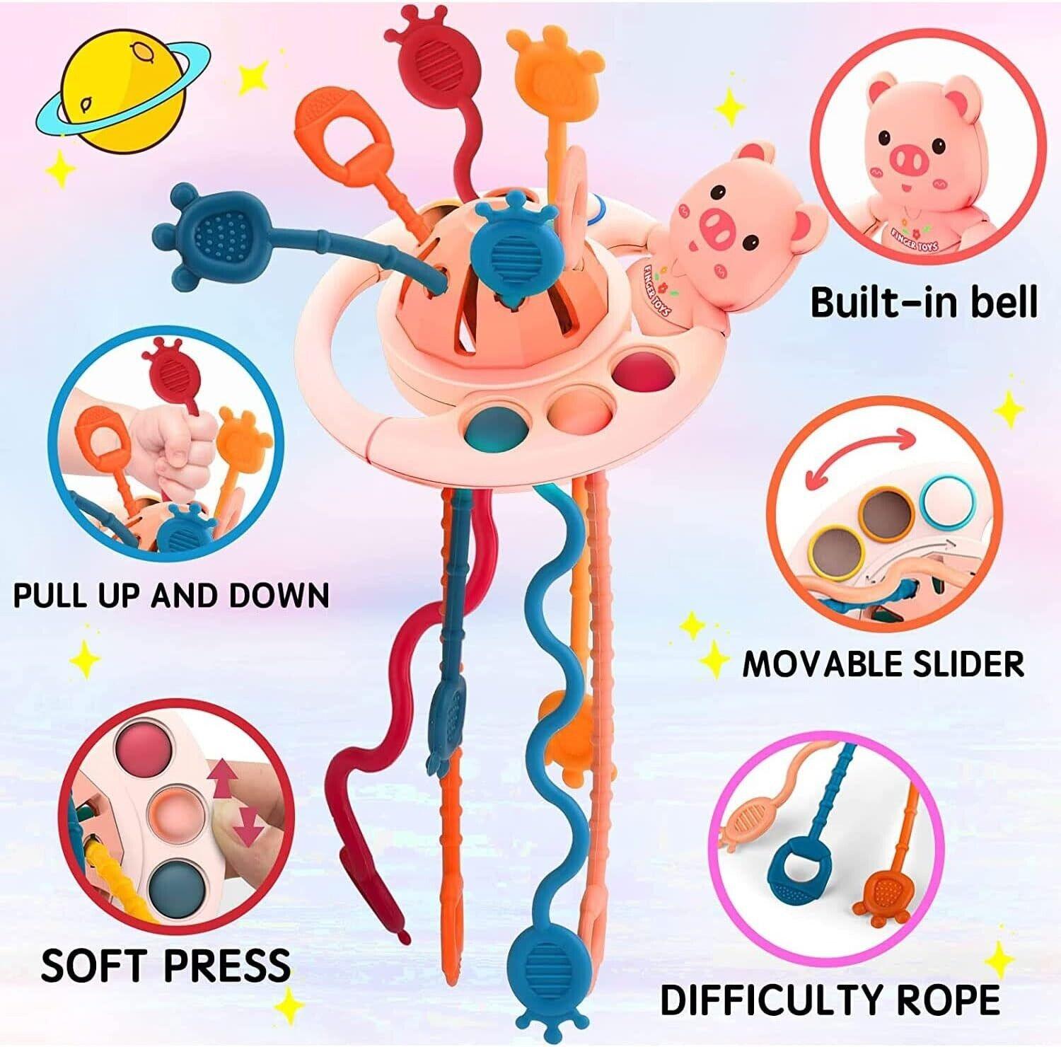 - 100 % sicheres Material: Dieses interaktive Spielzeug mit Kordelzug ist aus lebensmittelechtem Silikon und ABS gefertigt. Stellen Sie sicher, dass unsere Spielzeuge Ihren Kindern nicht schaden. Durch Ziehen und Zerren an der Kordel können Kleinkinder ihre motorischen Fähigkeiten, ihre sensorische Erkundung, ihre Feinmotorik und ihre Hand-Auge-Koordination entwickeln.