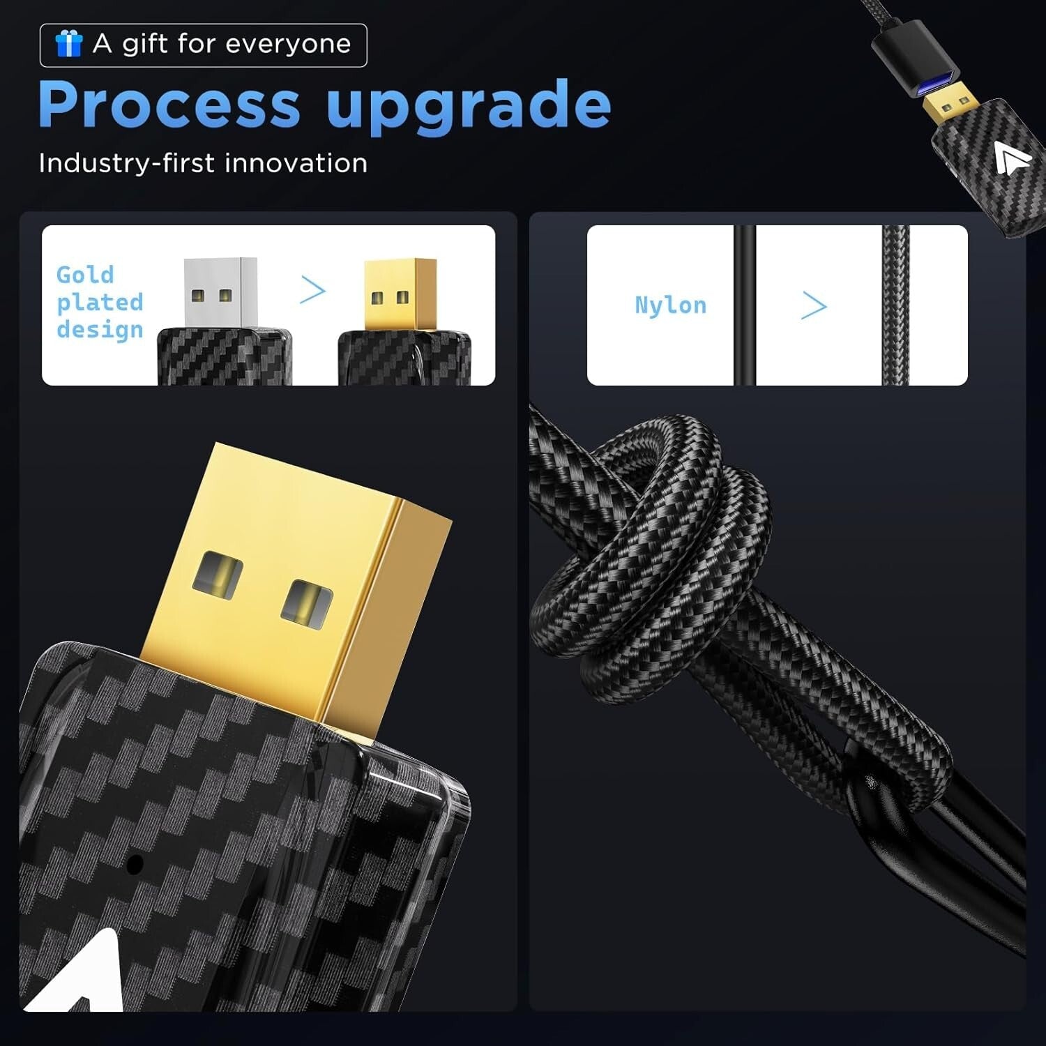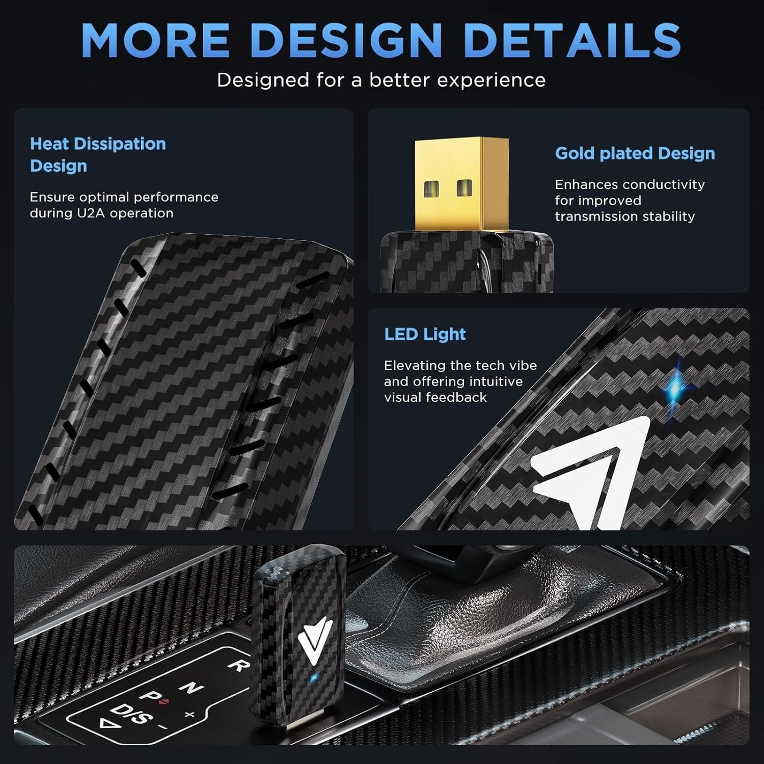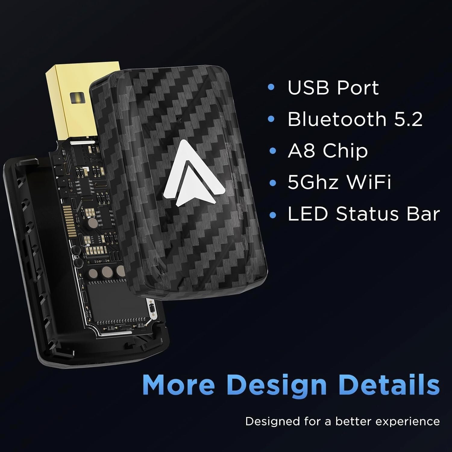 MSXTTLY Android Auto Wireless Adapter U2A-L9 Wandelt Wired Android Auto in Wireless, Kompatibel mit Android 11-16, Vergoldet USB C/A, 5 Ghz WiFi Schwarz