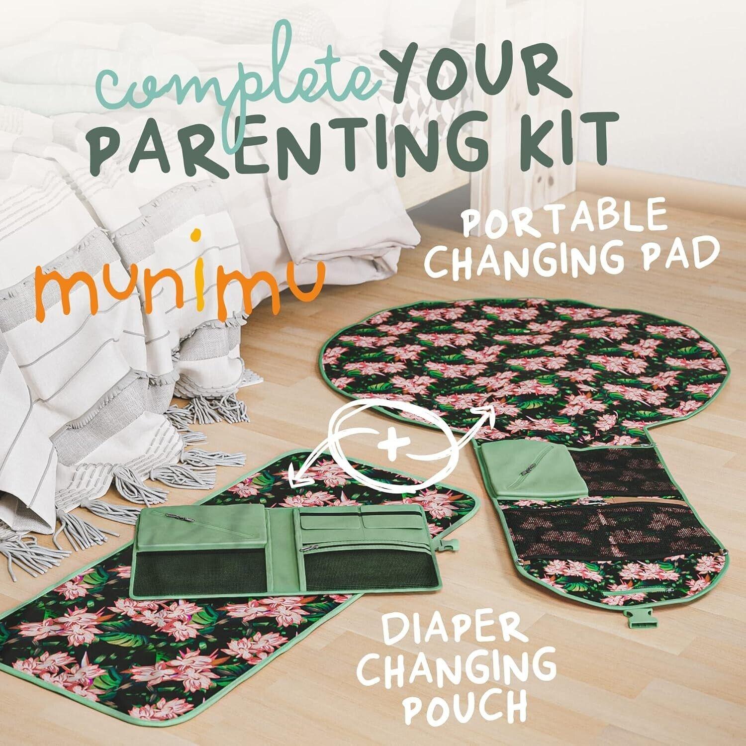 munimi stylische Wickeltasche mit Wickelunterlage inkl. Fach für Feuchttücher I Müheloses Windelwechseln dank viel Platz & langer Wickelunterlage I Wickeltasche klein auf dem