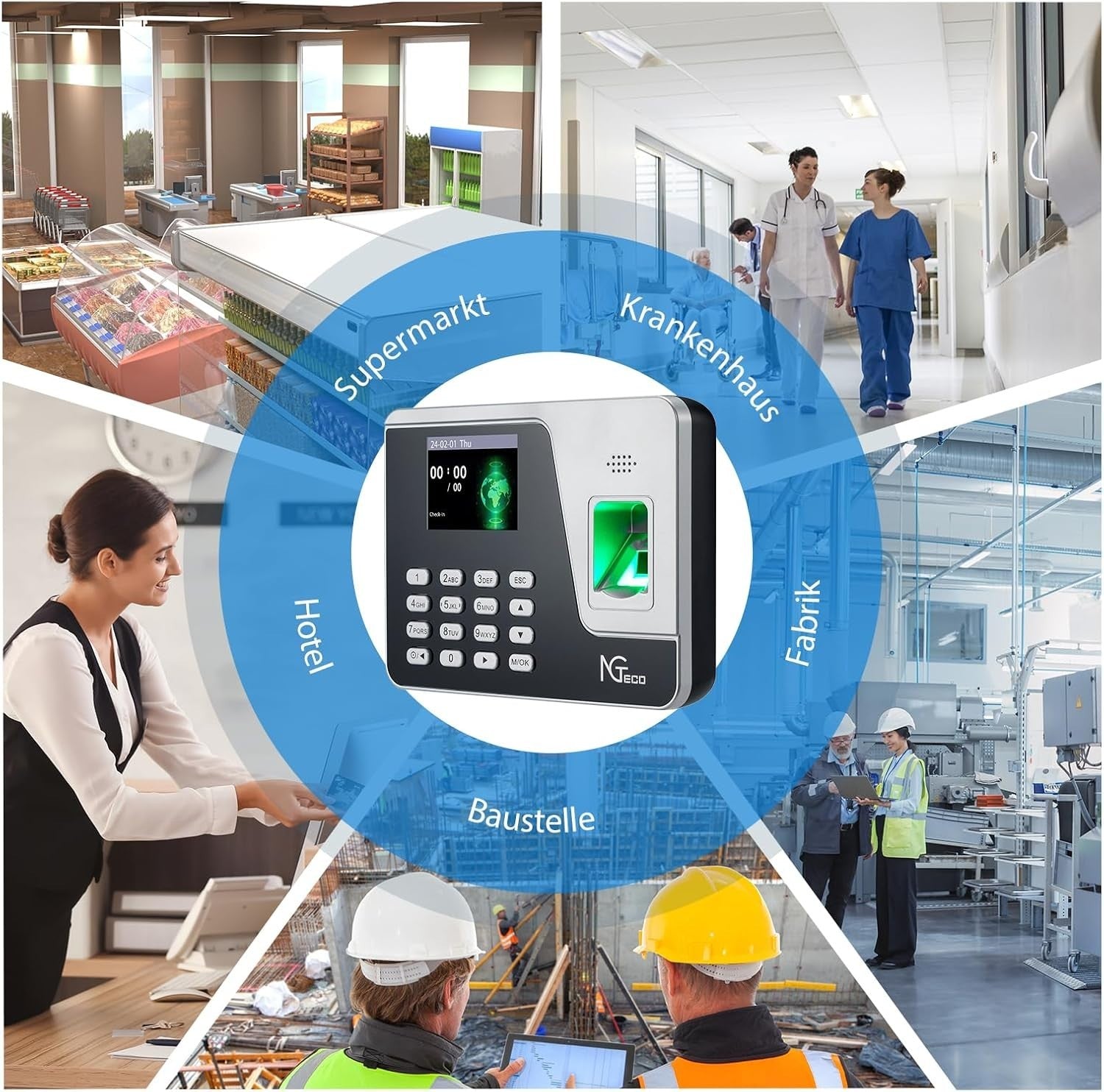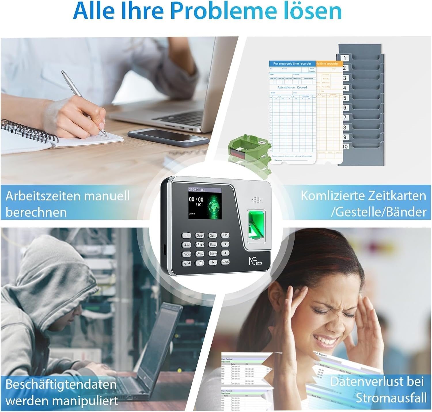 NGTeco Zeiterfassung für Kleinbetriebe Kein Netzwerk Erforderlich, Auto-Calculat