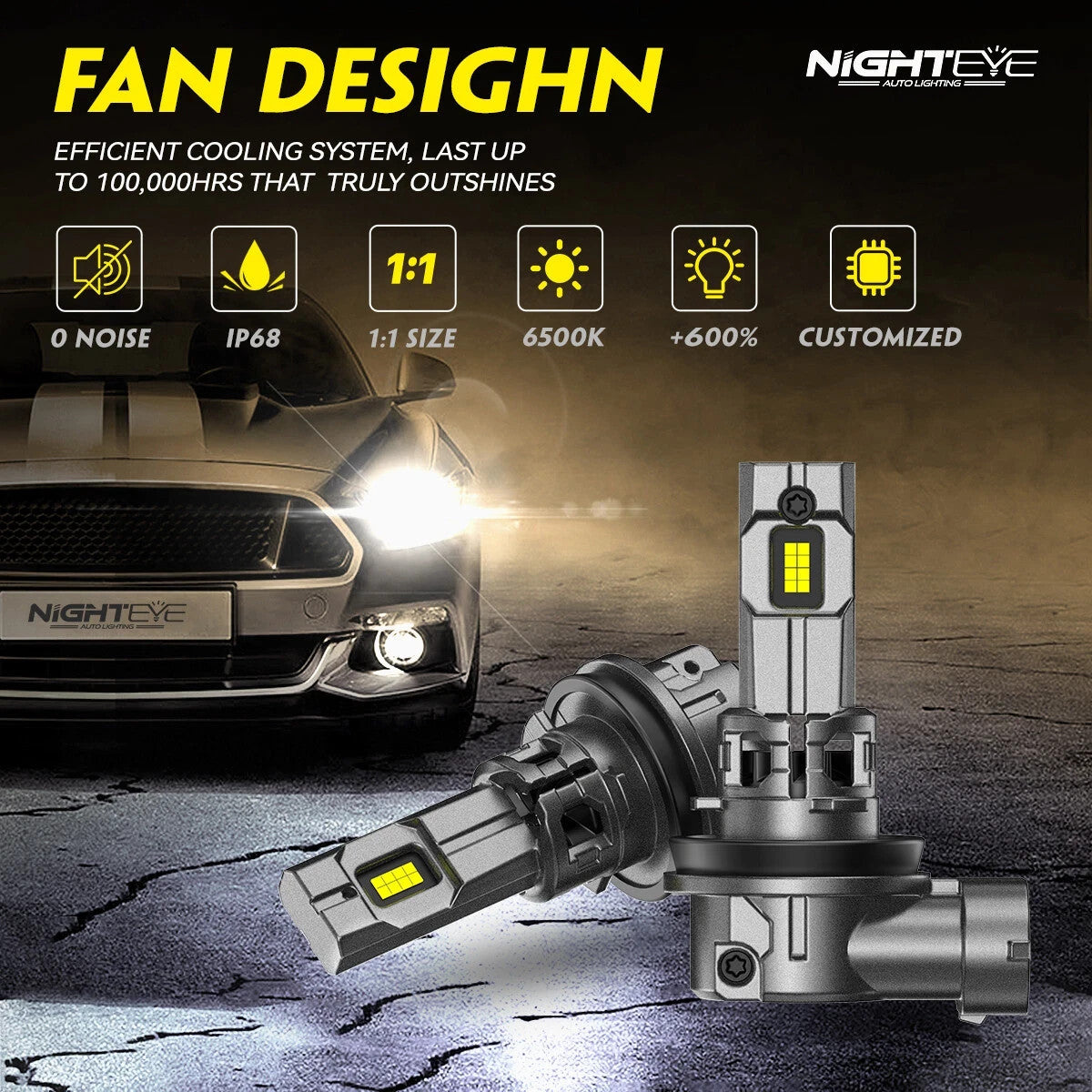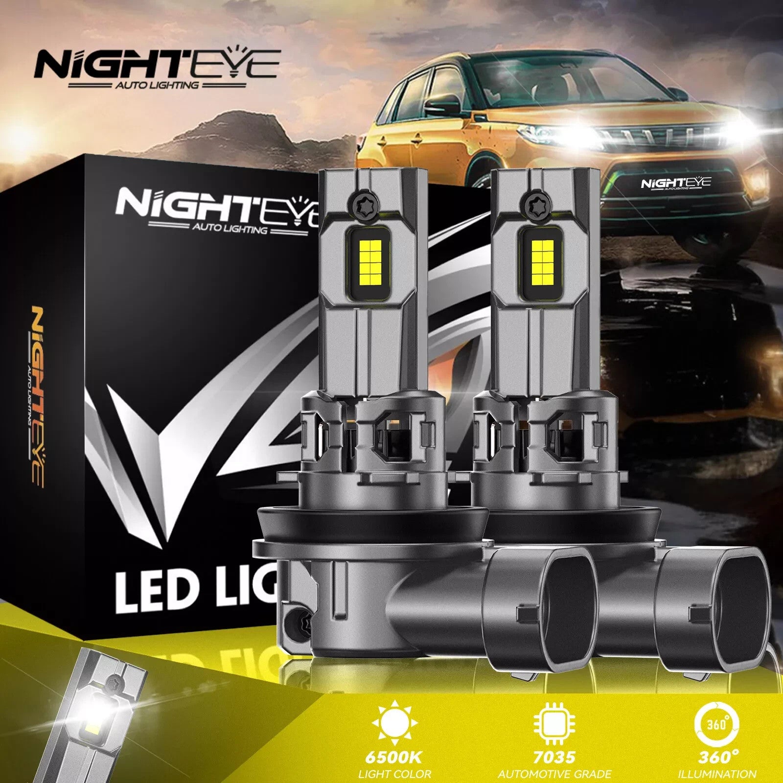 NIGHTEYE H11 LED-Scheinwerferlampen 70 W 30000 LM Hi-Lo Strahl 6500 K Supe