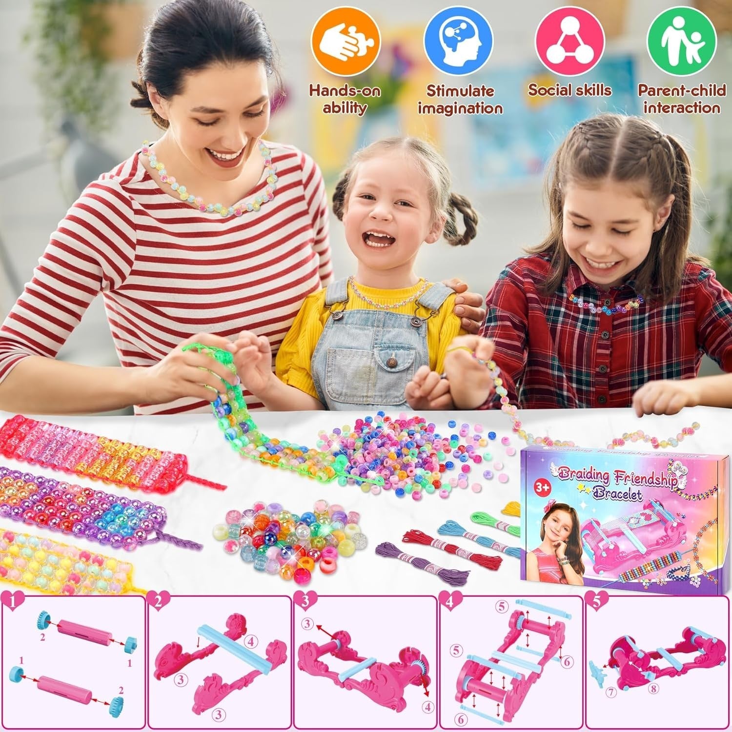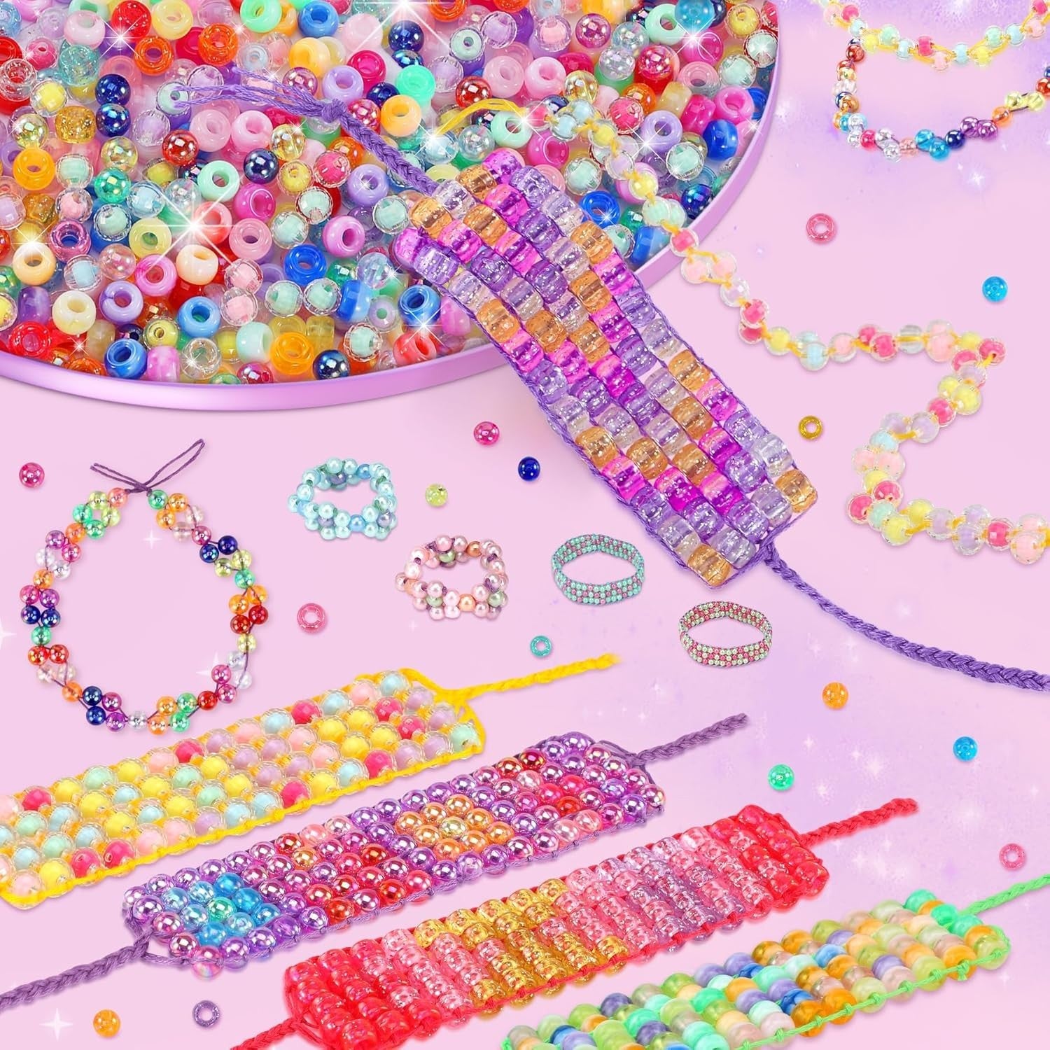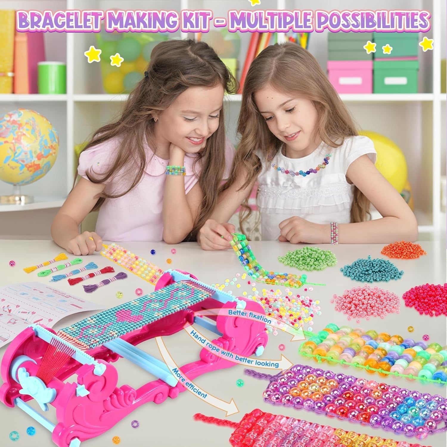 Ophy Armbänder Selber Machen - Perlen Set mit Abnehmbarem Flechtrahmen Bastelset Kinder ab 6 Jahre mit Glitzernden Perlen Schmuck Basteln Mädchen Geschenke für Mädchen im Alter von 6–12 Jahren
