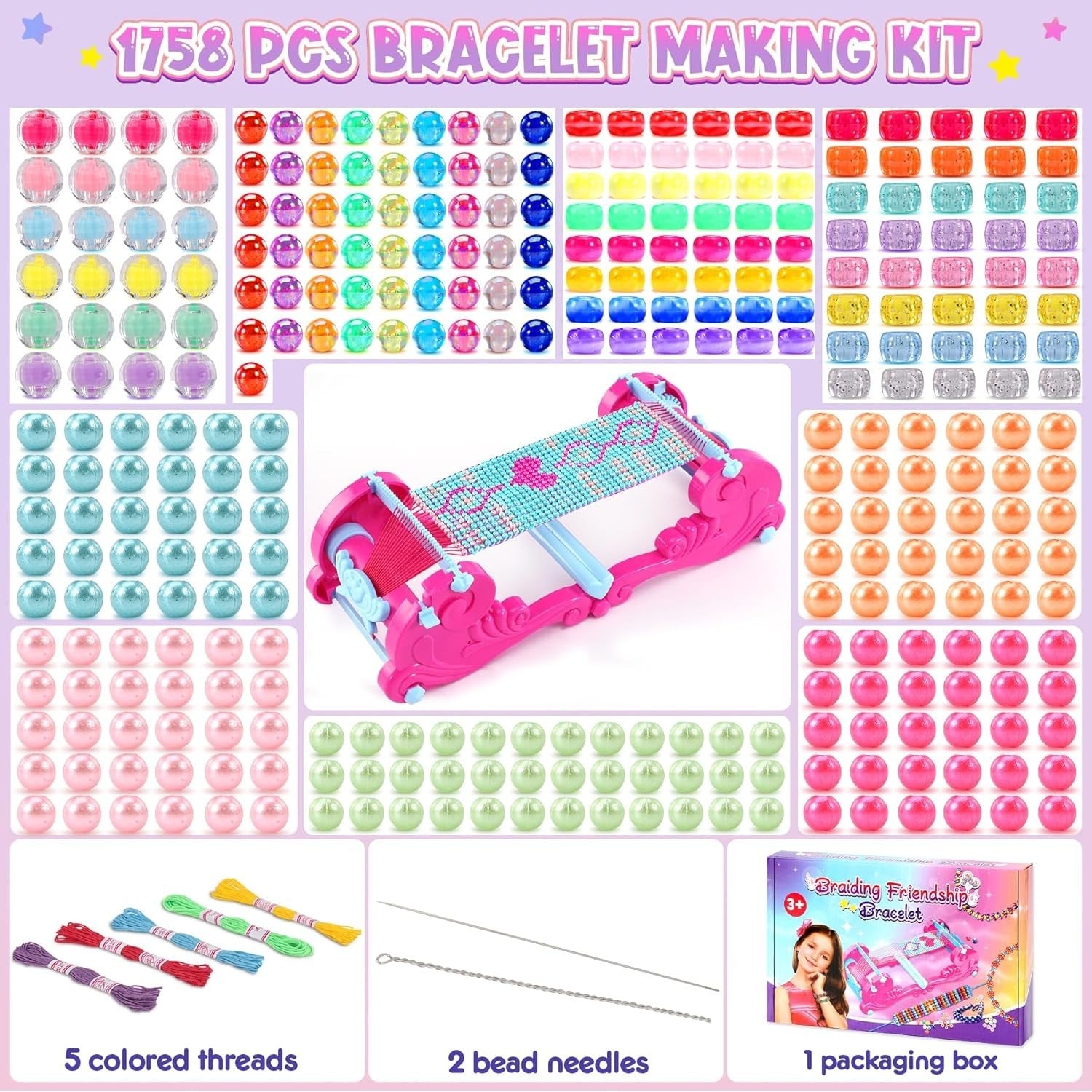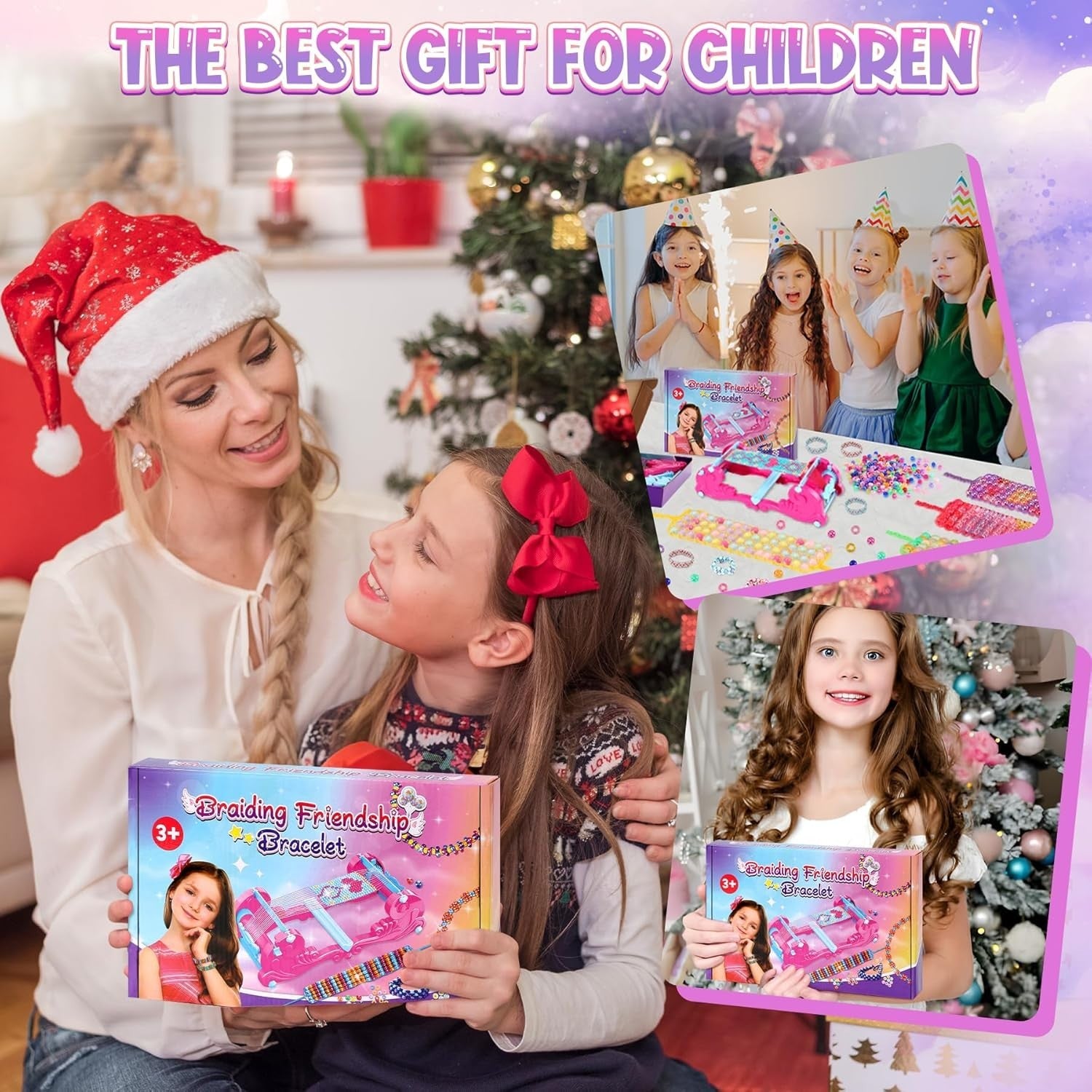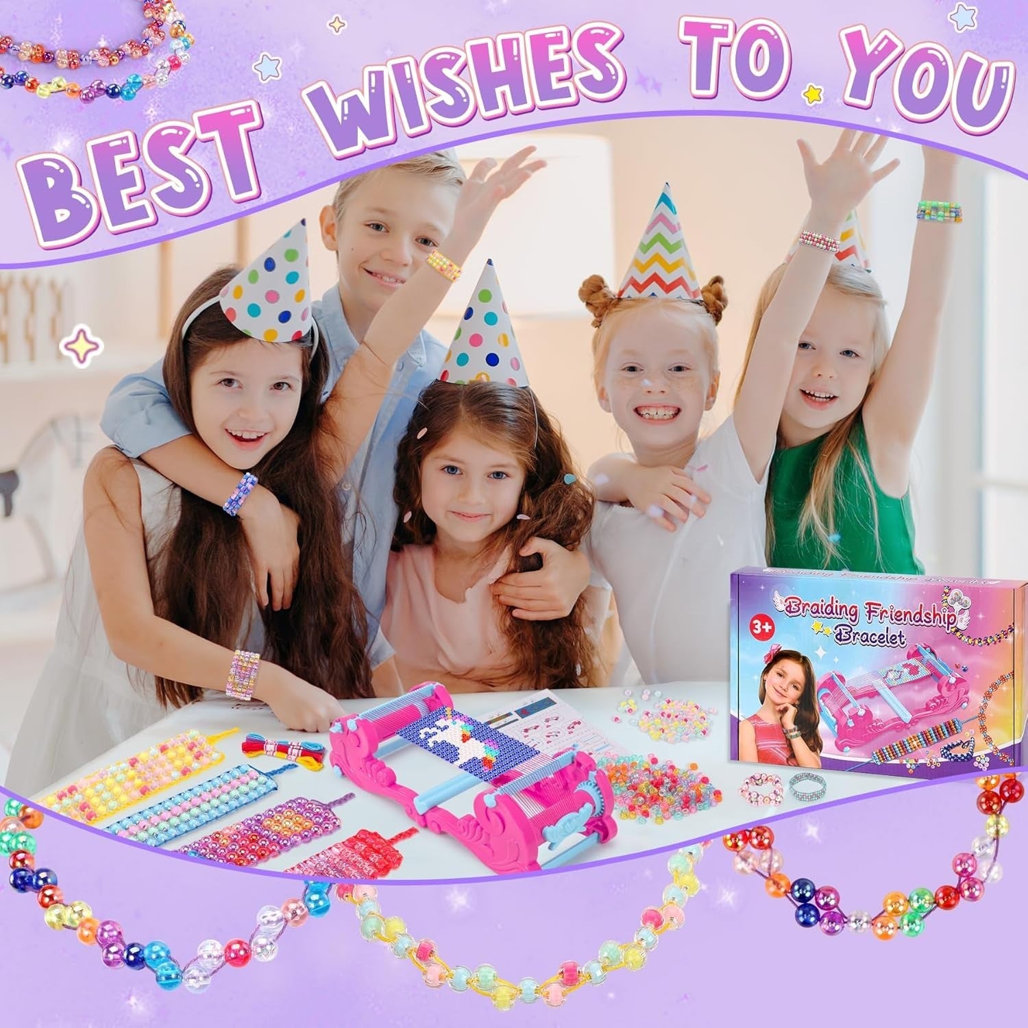 Ophy Armbänder Selber Machen - Perlen Set mit Abnehmbarem Flechtrahmen Bastelset Kinder ab 6 Jahre mit Glitzernden Perlen Schmuck Basteln Mädchen Geschenke für Mädchen im Alter von 6–12 Jahren
