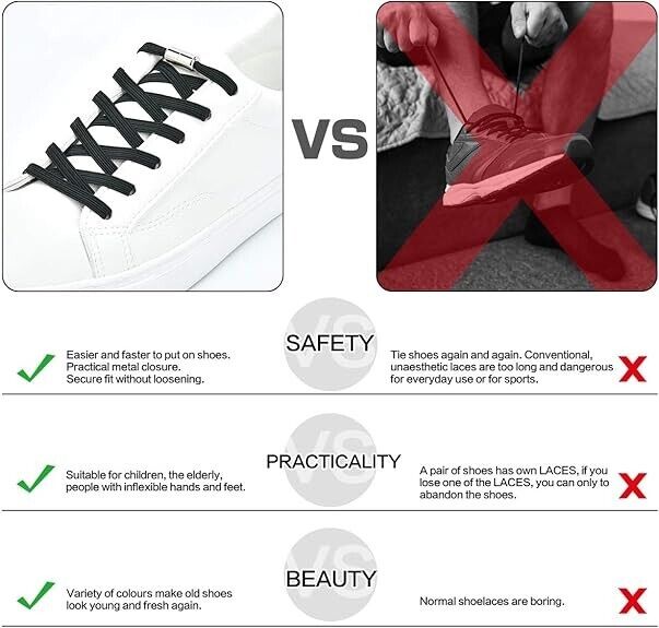 • ⊱ Einfach zu verwendender elastischer Schnürsenkel: In nur 6 einfachen Schritten erhalten Sie ein Paar Schuhe, die niemals geschnürt werden müssen