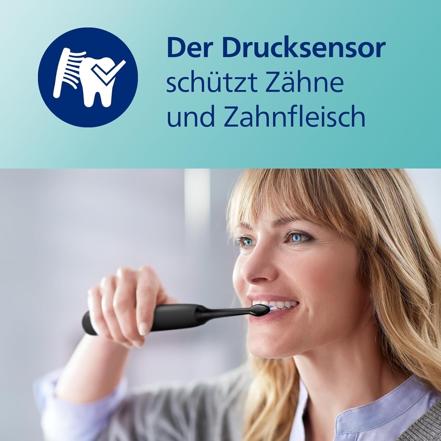 Philips Sonicare ProtectiveClean 4500 elektrische Zahnbürste, Schallzahnbürste mit 2 Putzmodi, Clean und White, Drucksensor, Timer und Reiseetui, Schwarz