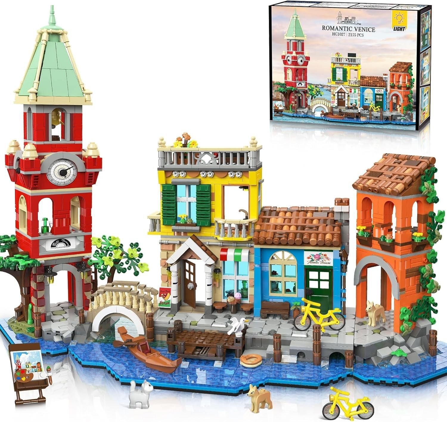 - Venedig Stadt Baukasten – Mit einer schnell abnehmbaren Struktur umfasst dieses modell einer Stadt am Fluss vier verschiedene Gebäude und einen gewundenen Kanal, die den traumhaften Charme der schwimmenden Stadt einfangen. Von bunten Fassaden und charmanten Blumenläden bis hin zu einer authentischen Pizzeria und der ikonischen venezianischen Gondel – jedes Detail wurde sorgfältig gestaltet, um die reiche italienische Atmosphäre erlebbar zu machen