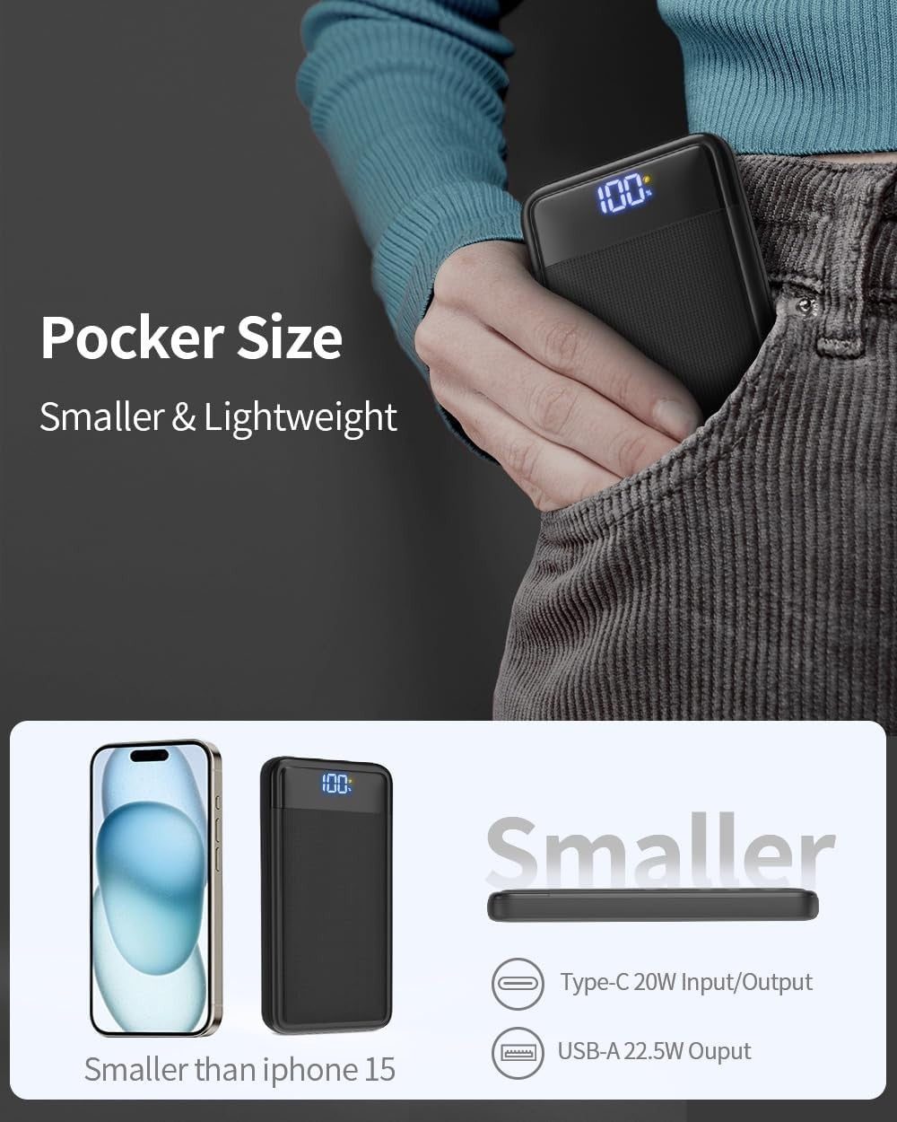 - 【20W PD3.0 Type C Eingang und Ausgang】Der Externe Akku ist mit einem zweiseitigen Type C Anschluss ausgestattet, der mit dem 20W PD3.0 Schnellladeprotokoll Kompatibel ist, Sie können Ihr neues iPhone 16 Pro unglaublich schnell von 0 auf 62% in 30 Minuten aufladen, Passt sich perfekt an Ihr neues iPhone und alle kommenden USB-C Geräte an.