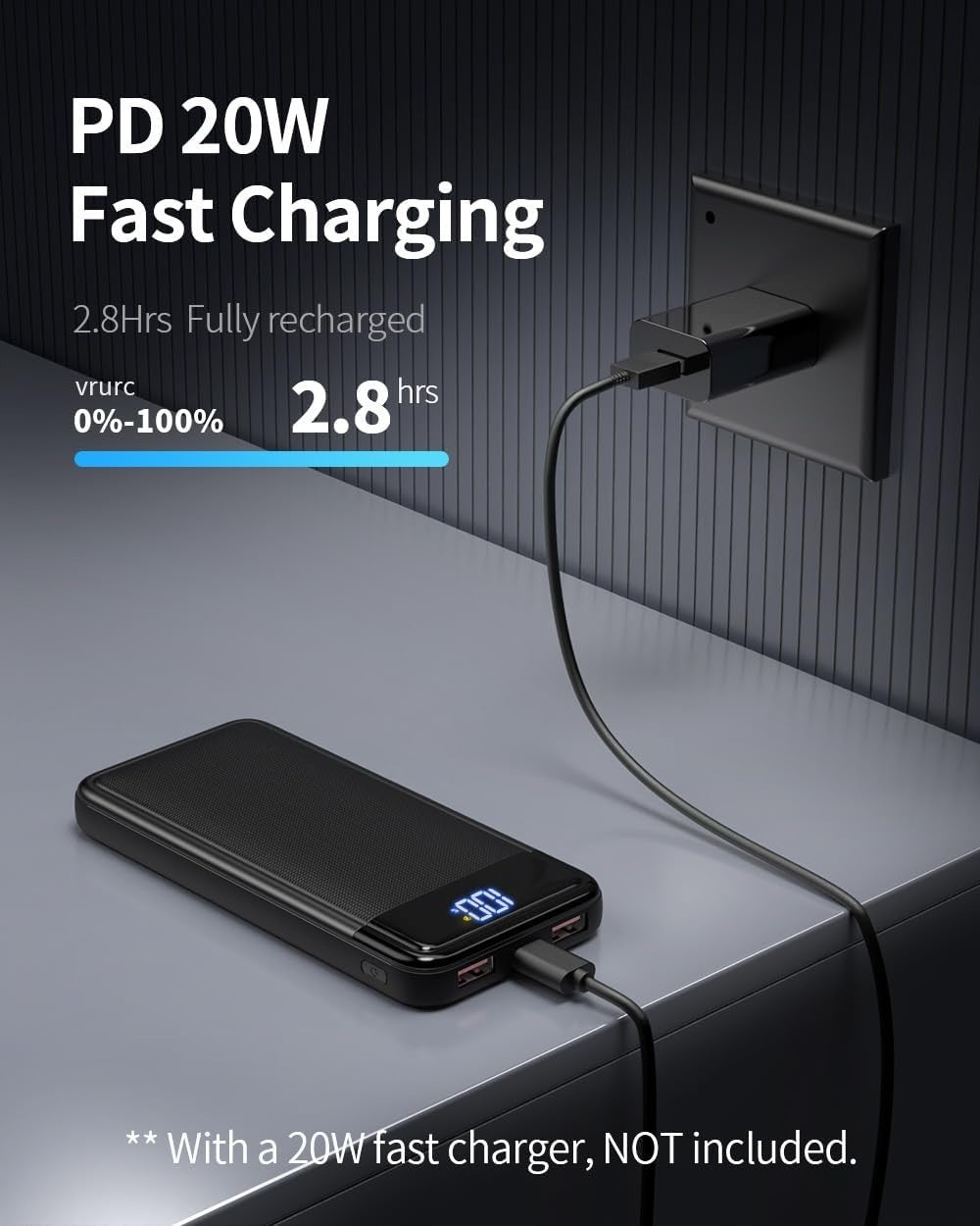 - 【Powerbank 20W Fast Input】Das Tragbare Ladegerät mit Type C Eingängen, einschließlich des Type C Anschlusses, der einen 20W Schnelleingang Unterstützt, es kann in nur 2 Stunden und 56 Minuten vollständig aufgeladen werden, wenn Sie das 20W-Ladegerät zum Aufladen des Akkus verwenden, im Vergleich zu anderen externen PD-Akkus ohne Schnellladefunktion, spart er mehr als die Hälfte der Zeit.