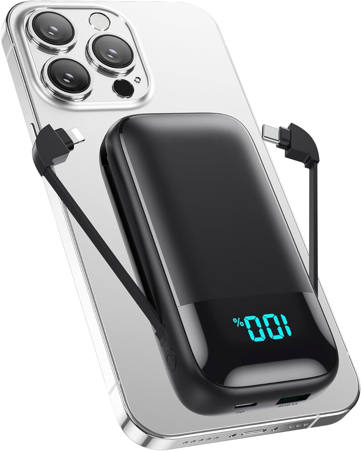 - 【Power Bank mit eingebauten Kabeln】Power bank eingebaut 2 zusammenklappbare Ladekabel, USB-C Kabel und für iPhone Kabel. Sie können die Powerbank verwenden, um Ihr iPhone und USB-C-Geräte direkt ohne zusätzliche Kabel aufzuladen. Wunderbare Powerbank für das Ausgehen oder Reisen Wesentliche.