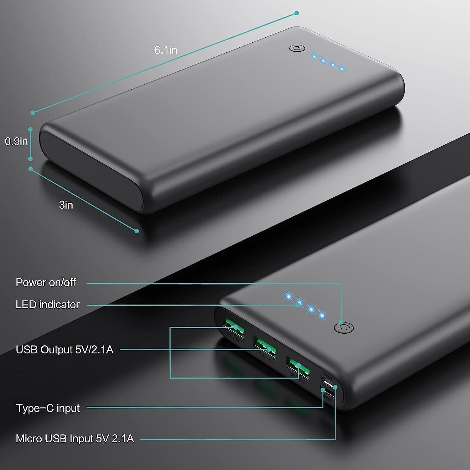 QTshine Power Bank, Hohe Kapazität PD 3.0A Powerbank Schnelles Aufladen USB C