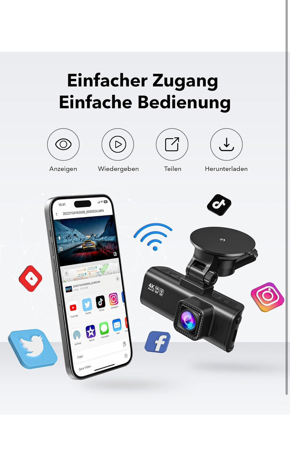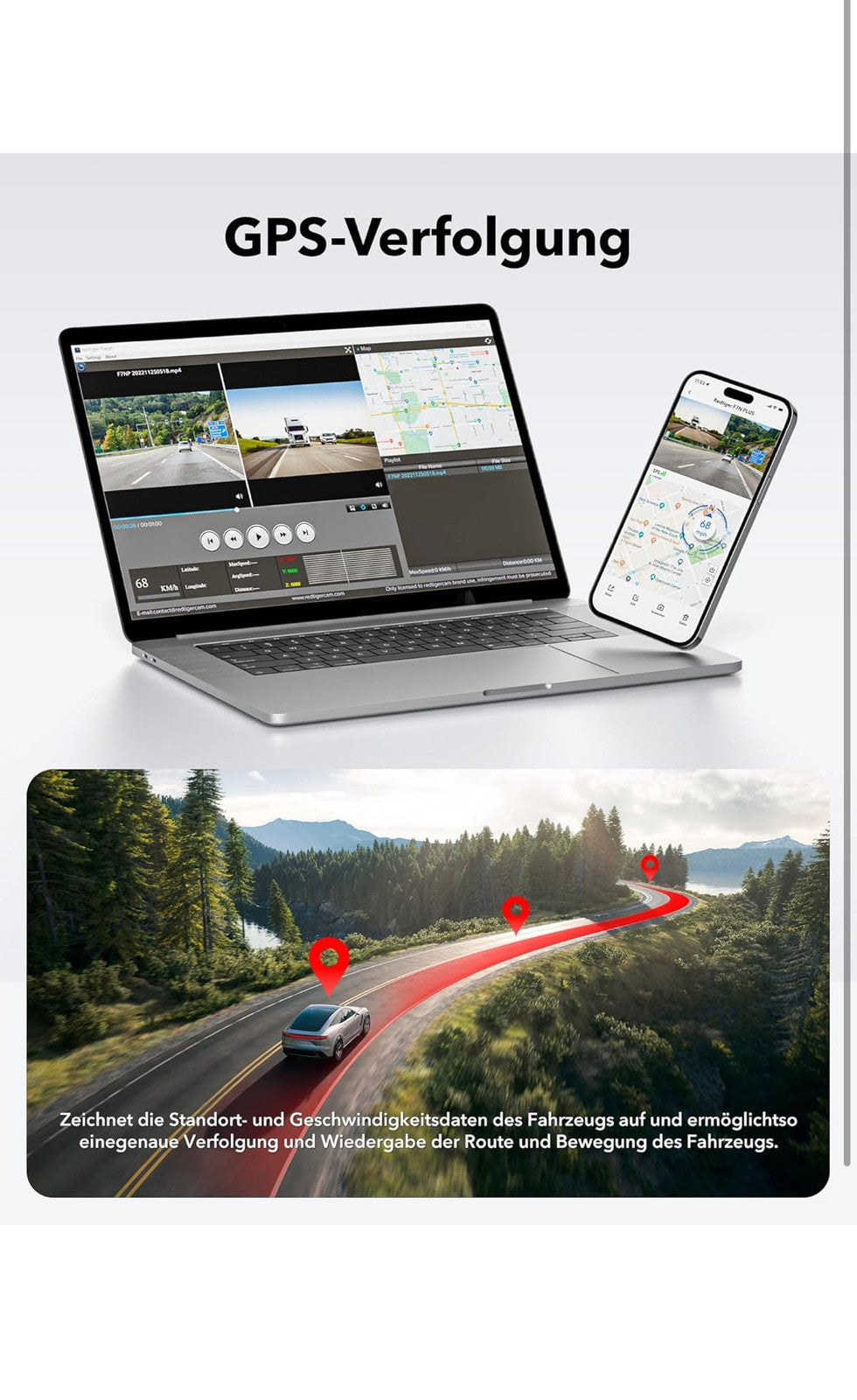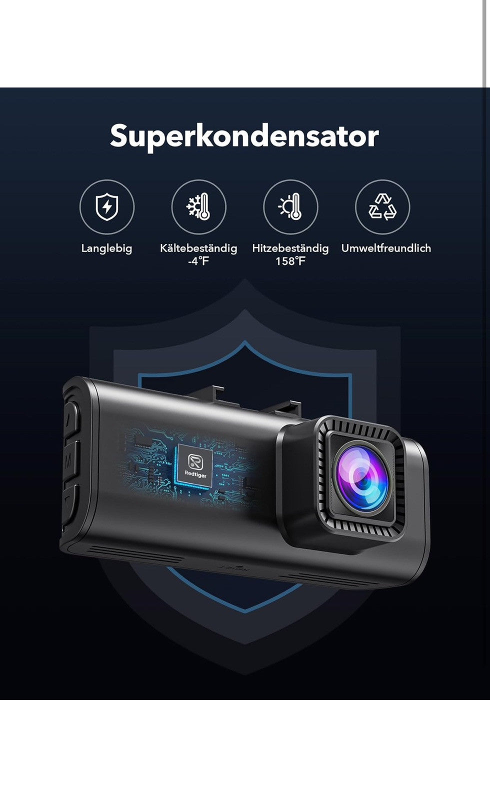[Interiertes WIFI/REDTIGER APP-Steuerung] - Die Dashcam auto verbindet sich mit der RedTiger App über das eingebaute WIFI, so dass eine Datenübertragung überflüssig ist. Sehen Sie sich Live-Aufnahmen an, geben Sie sie auf Ihrem iOS- oder Android-Smartphone wieder und verwalten Sie die von Ihnen aufgenommenen Videos. | Teilen Sie auch Ihre Reisen und schönsten Momente mit Freunden und Familie mit nur einem Klick. Das integrierte GPS hilft Ihnen bei der Aufzeichnung von Fahrstrecke, Fahrgeschwindigkeit, Längen- und Breitengrad und anderen Informationen. Hinweis: Das WLAN hat nur eine effektive Reichweite von 3-5 Metern, über diese Entfernung hinaus kann keine Verbindung hergestellt werden.