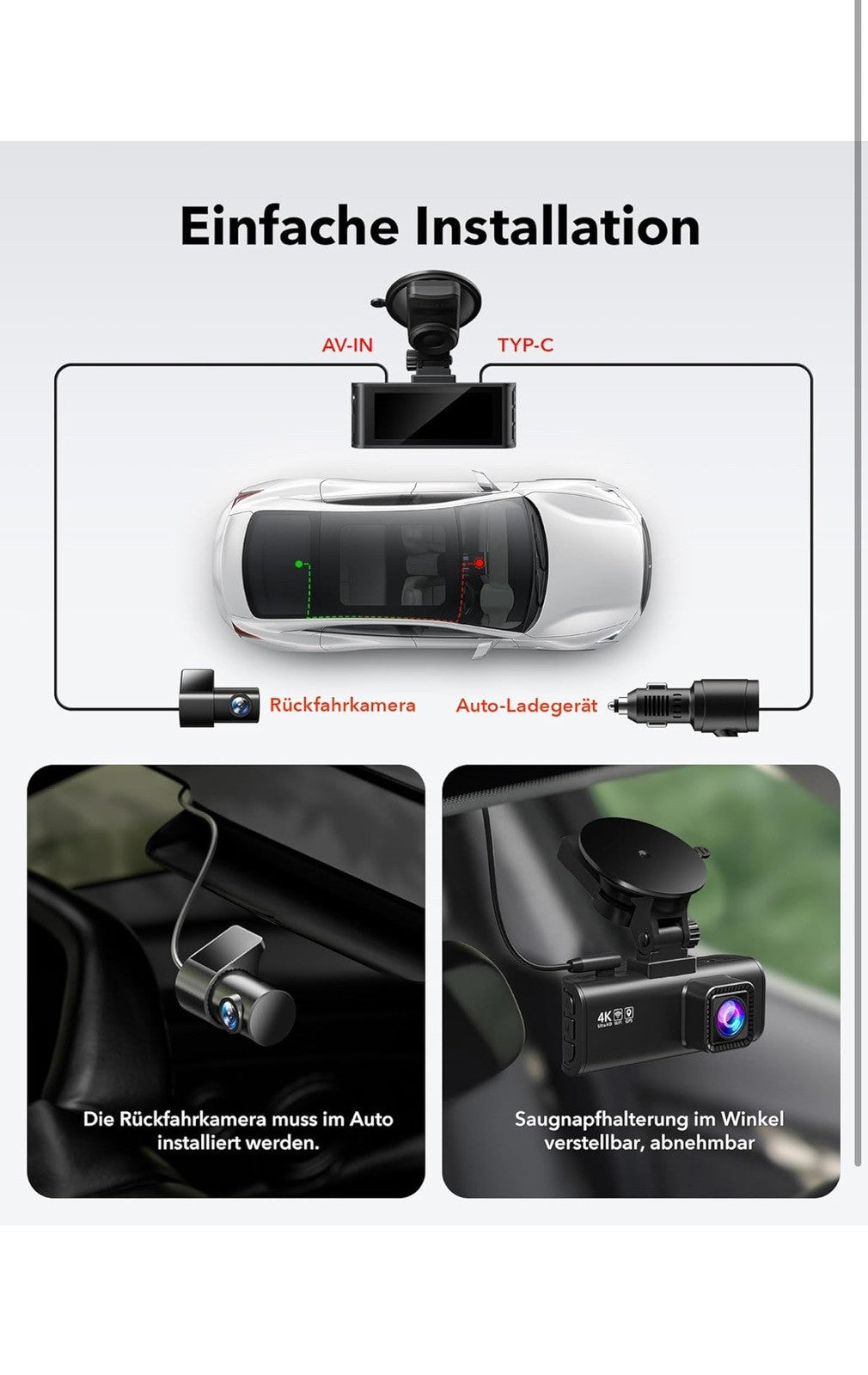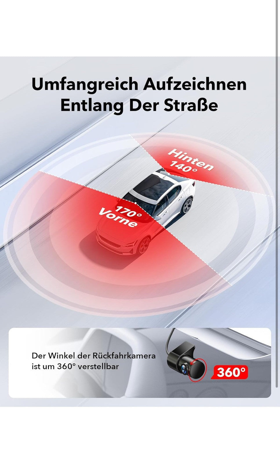 [Parküberwachung/G-Sensor] - Wenn Sie über das Hardware-Kit verbunden sind, können Sie den Parküberwachungsmodus verwenden: G-SENSOR: Wenn plötzliche Vibrationen und Kollisionen erkannt werden, schaltet er automatisch die Aufnahme von Notfallvideos ein, sperrt sie in einem Ordner und hilft Ihnen, wichtige Beweise aufzubewahren. Zeitrafferaufnahme: Sie können 12H / 24H / 48H einstellen, das aufgezeichnete Video wird durch schnelle Wiedergabe präsentiert, jede Videoaufnahmezeit ist die gleiche wie die ausgewählte Loop-Aufnahmezeit, und die Zeitrafferaufnahme kann mehr Platz sparen, um mehr Clips zu speichern. Hinweis: Hardware-Kit muss separat erworben werden (ASIN:B0B6FB62XV).