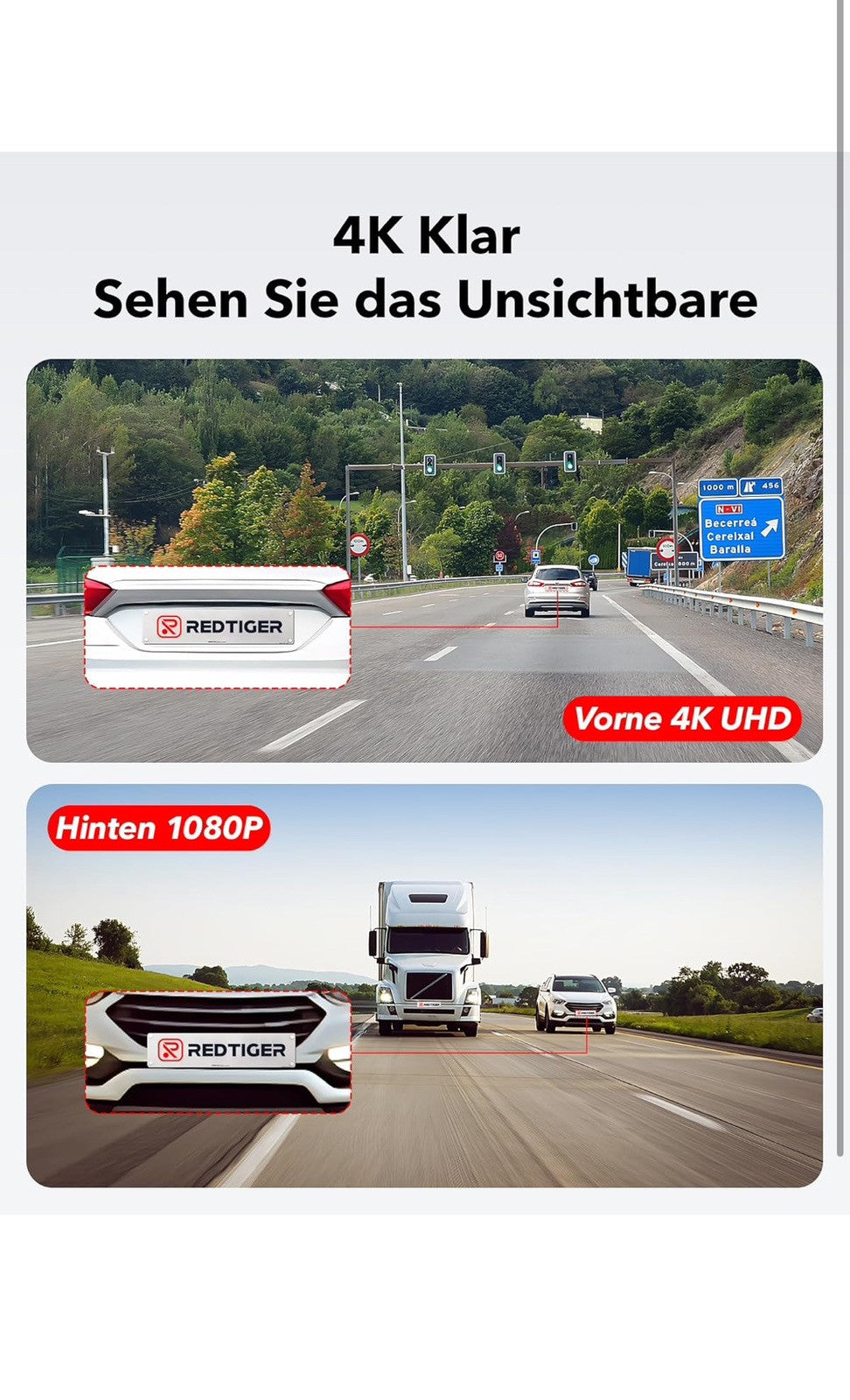 Dual Dashcam 4K + 1080P] - REDTIGER F7N Plus Dual-dashcam auto vorne hinten, 170° F1.5 Frontkamera kann bis zu UHD 4K (3840 * 2160P) klare Videos aufnehmen. 140° FHD 1080P Auflösung Weitwinkel-Rückfahrkamera für das Auto, kann im Auto frei gewählt werden Die Einbauposition hilft, das Sichtfeld zu erweitern, um tote Winkel zu reduzieren Liefert wichtige Beweise im Falle einer Kollision oder eines Streits, damit Sie beruhigt sein können und ein Gefühl zuverlässiger Sicherheit beim Fahren.