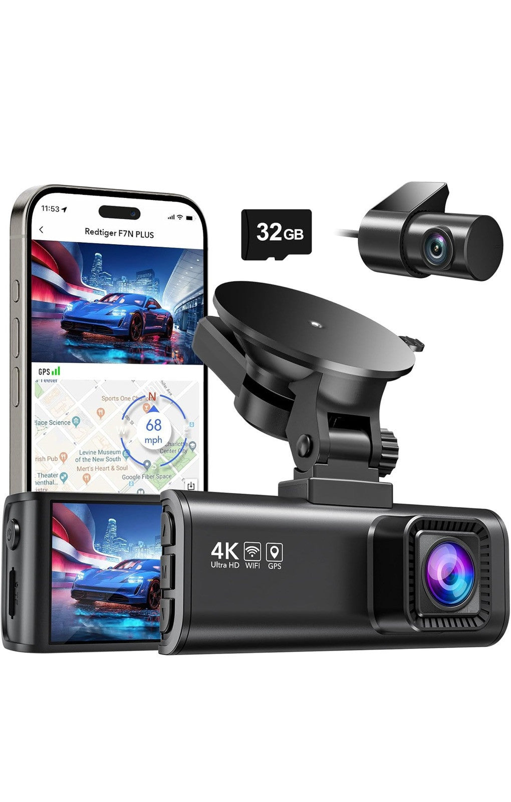 REDTIGER Dashcam Auto Vorne Hinten 4K/2,5K mit GPS WiFi, Dash Cam Auto Kamera 3,18" IPS-Bildschirm, kostenlose 32-GB-Karte, Nachtsicht, Loop-Aufnahme, 170°Weitwinkel WDR, Unterstützt 256 GB Max(F7NP)
