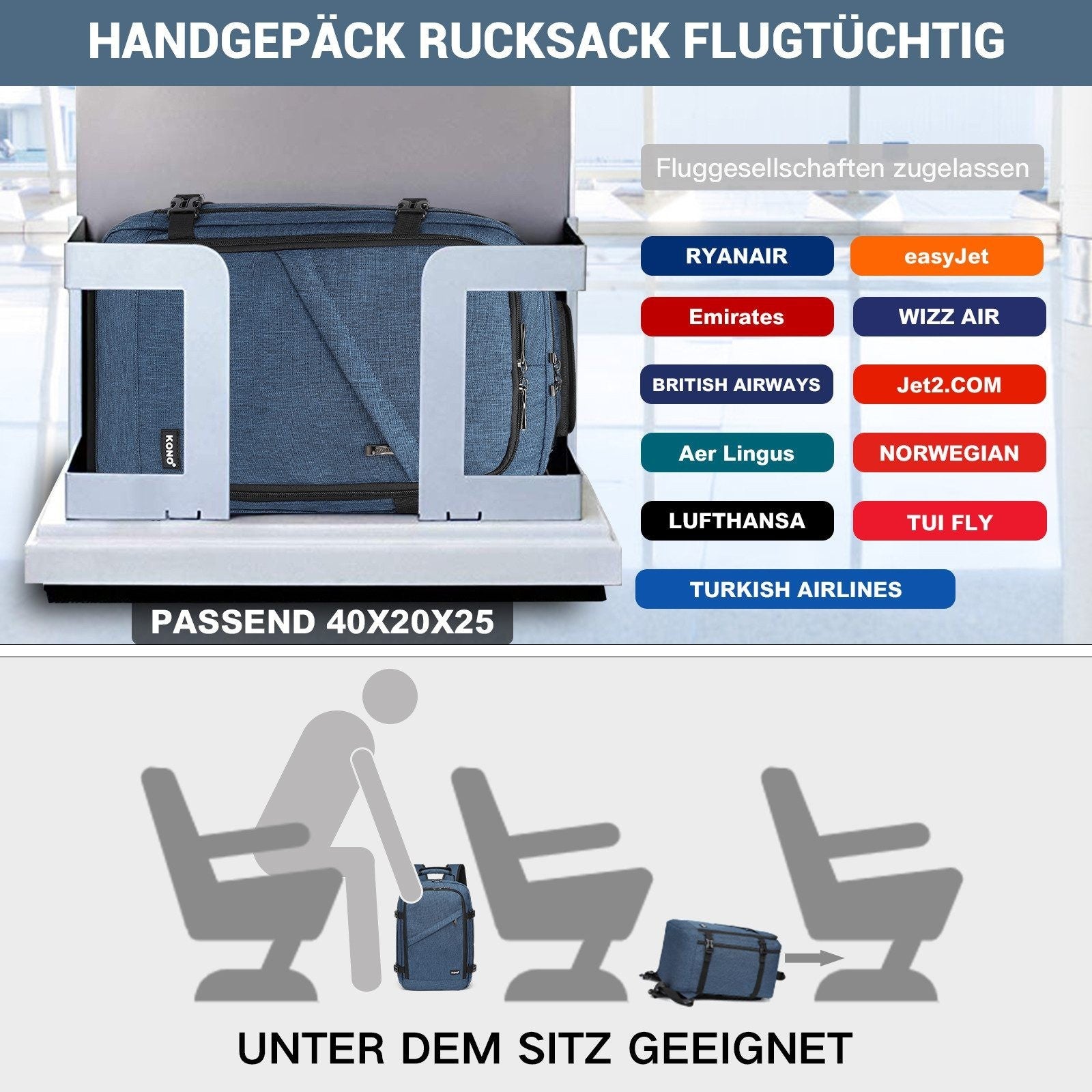 Reiserucksack Rucksack Kabinenrucksack Kabinentasche Handgepäck 40x20x25cm - Blau