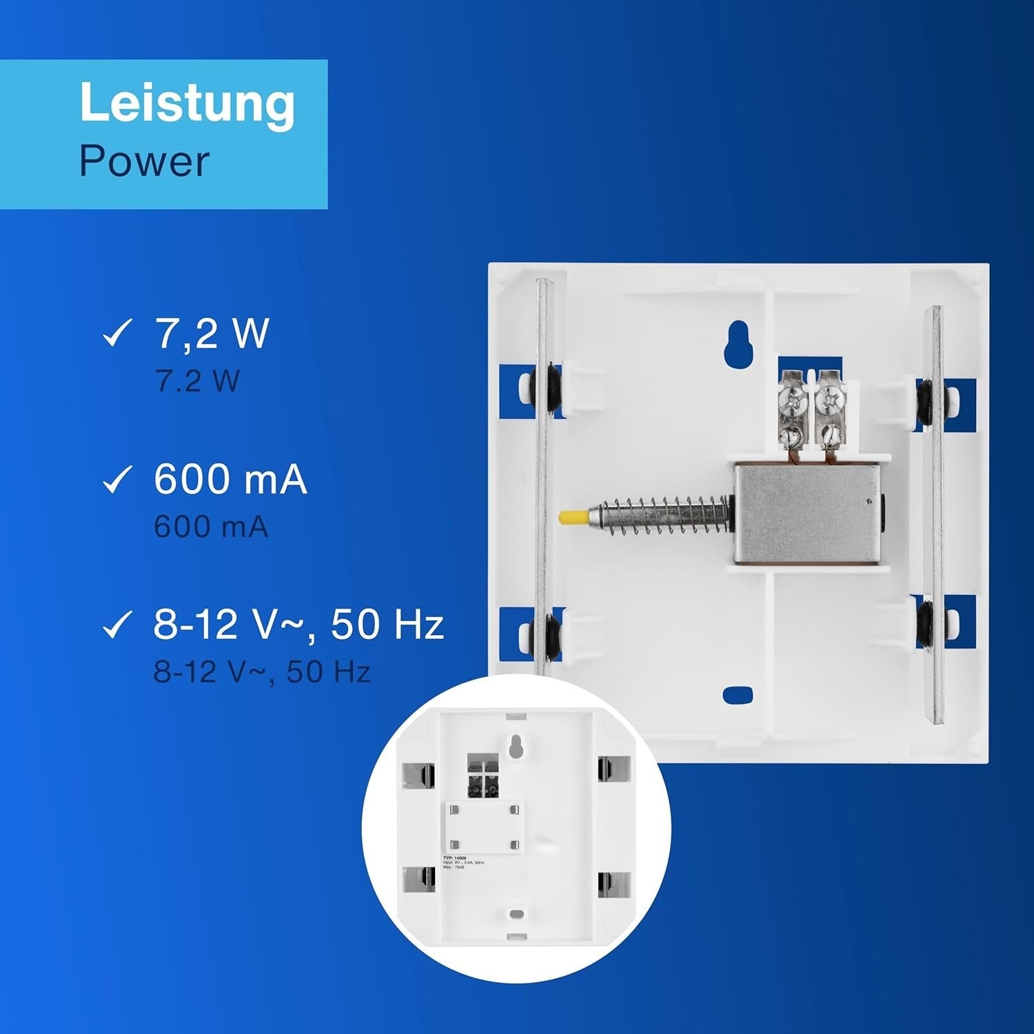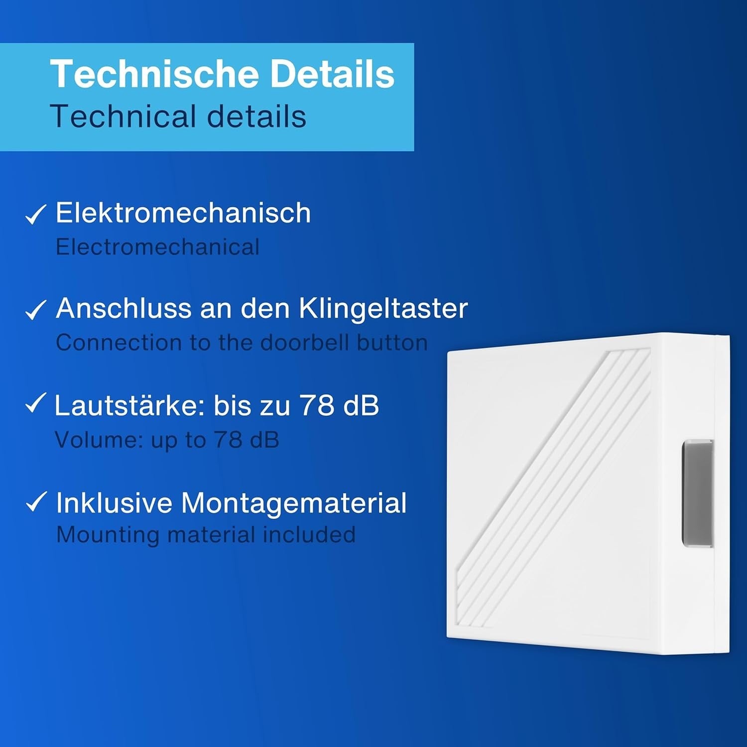 • Diese elektromechanische Hausklingel ist mit ihren bis zu 78dB auch in entfernteren Räumen gut hörbar