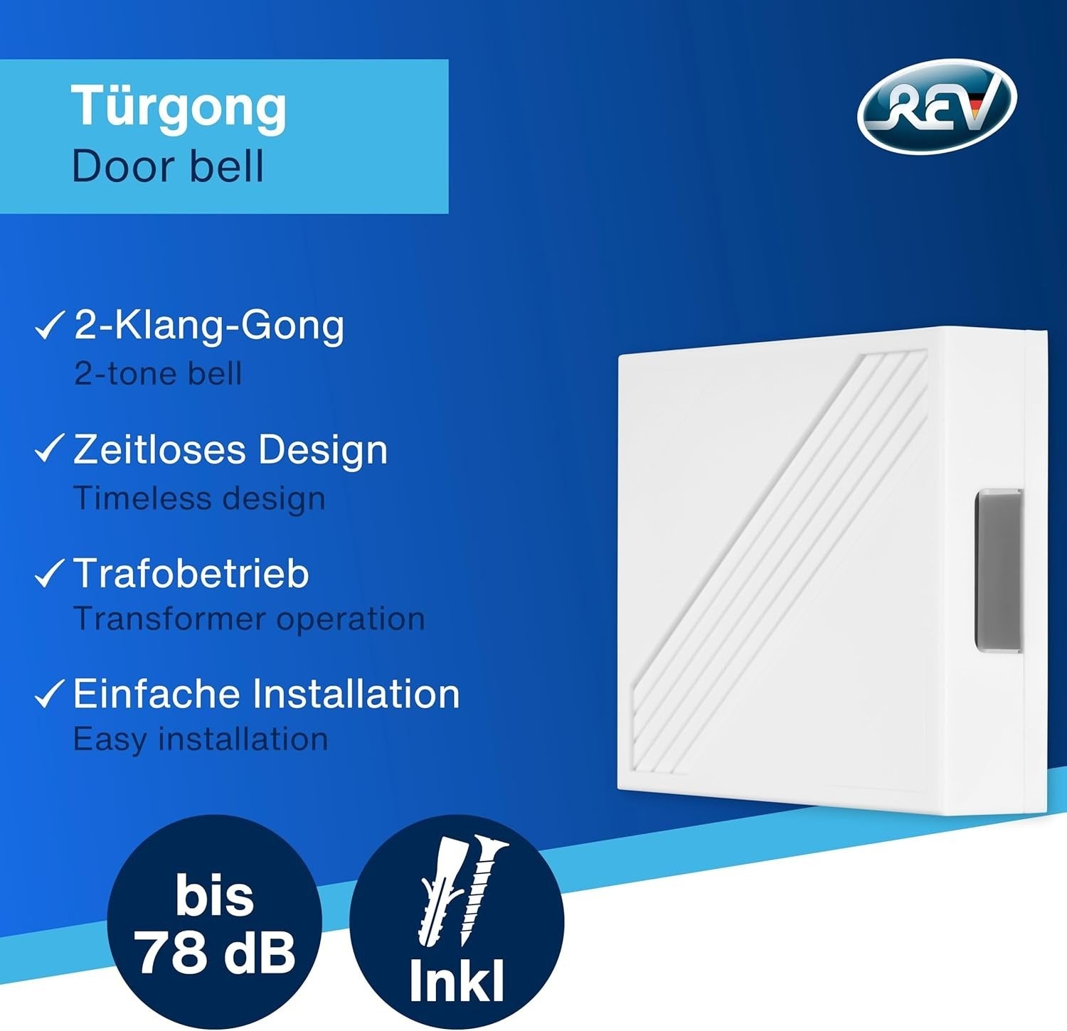 REV Türklingel - Türgong Doppelklang-Gong Mechanisch, 0,6A, Bis 78Db, 8 V, Weiß