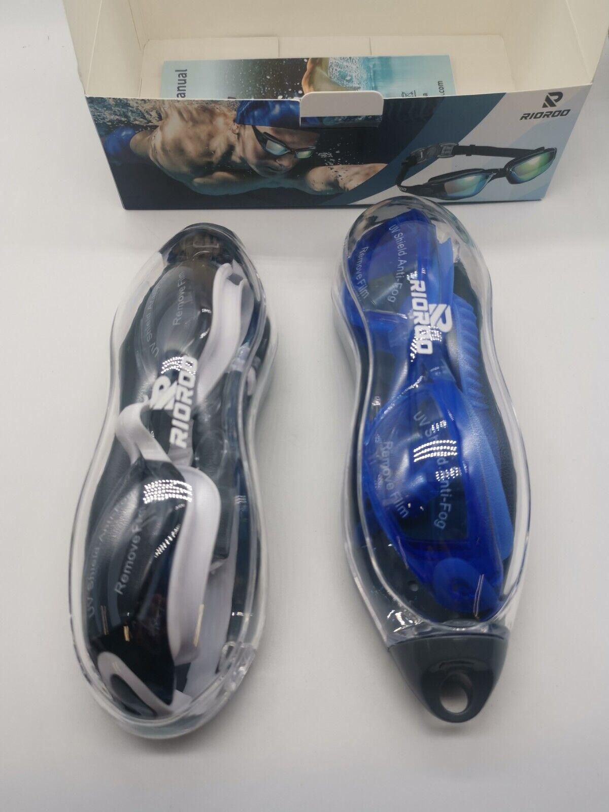 RIOROO 2x Schwimmbrille für Herren & Damen mit Breiten Gläsern, UV 1xBlau 1xWeiß