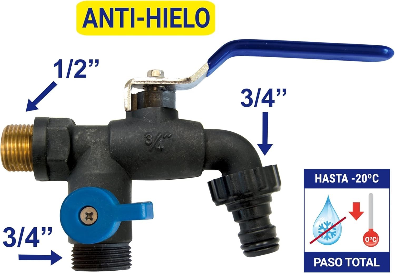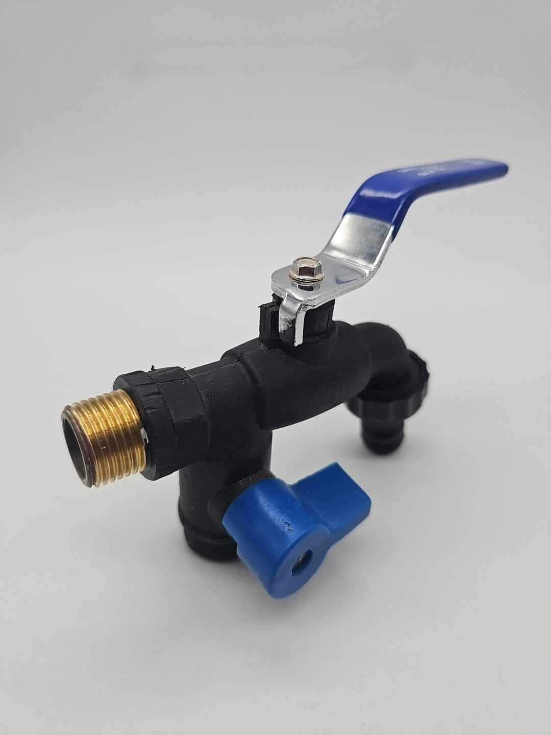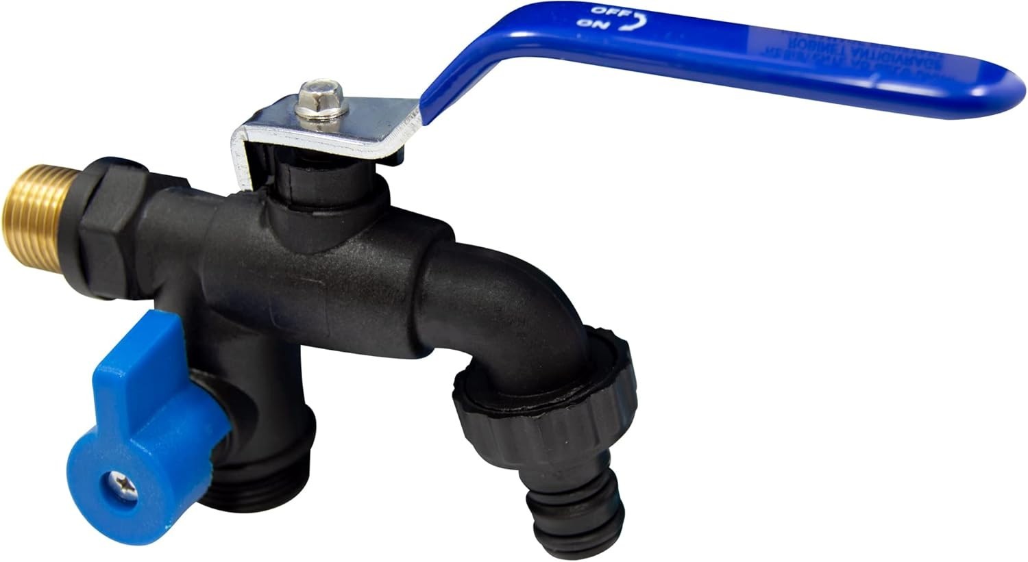 - 1/2 Zoll Frostschutz-Gartenarmatur mit zwei Ausgängen ¾" und automatischer Kunststoffanschluss