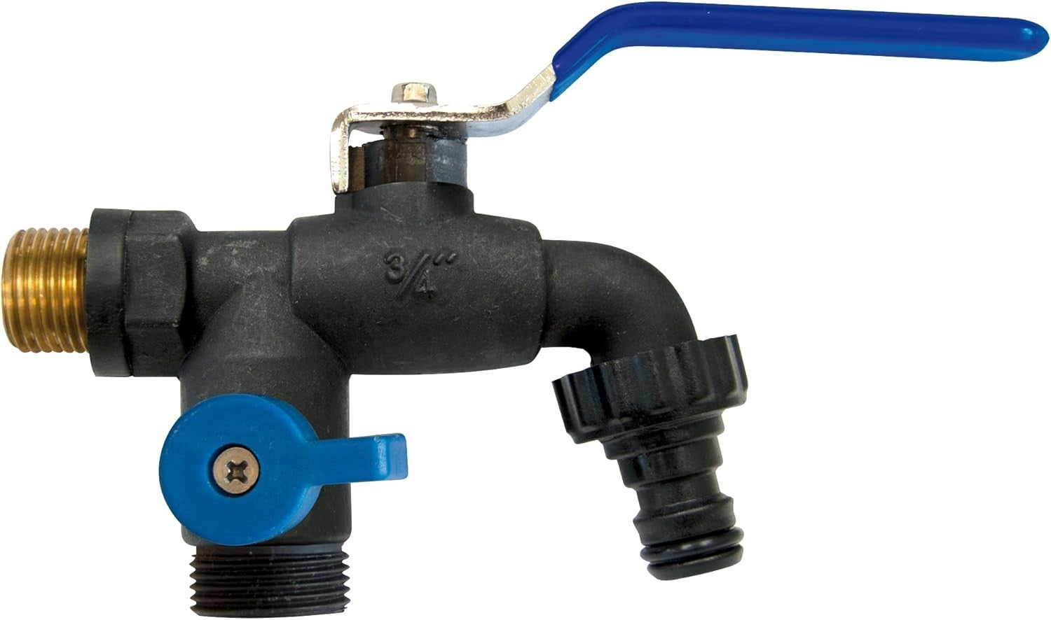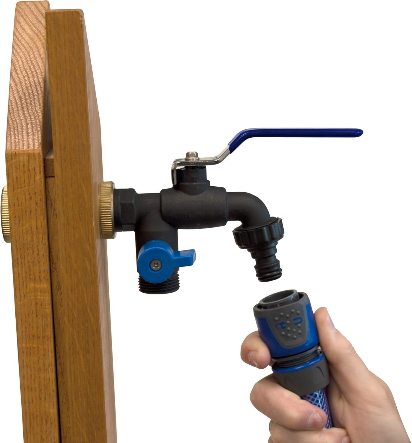 S&M 180040 Garten-Wasserhahn, Frostschutz, mit zwei Ausgängen und automatischer Steckdose, Schwarz und Blau