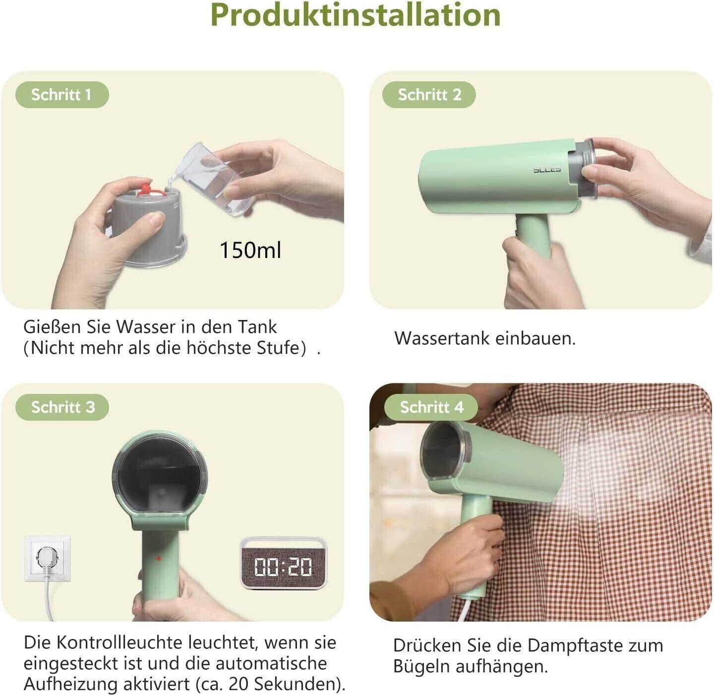 - [Großer abnehmbarer 150ML Wassertank] Der Wassertank mit einem Fassungsvermögen von 150ml verlängert die Arbeitszeit um bis zu 20 Minuten und reduziert den Aufwand für das häufige Nachfüllen von Wasser. Bügeln Sie mehrere Kleidungsstücke, machen Sie sich keine Sorgen über Wasseraustritt, Sie müssen es nur einfach drehen, um den Wassertank zu installieren. Durch den durchscheinenden Wassertank können Sie jederzeit die Veränderungen des Wasserstandes beobachten.