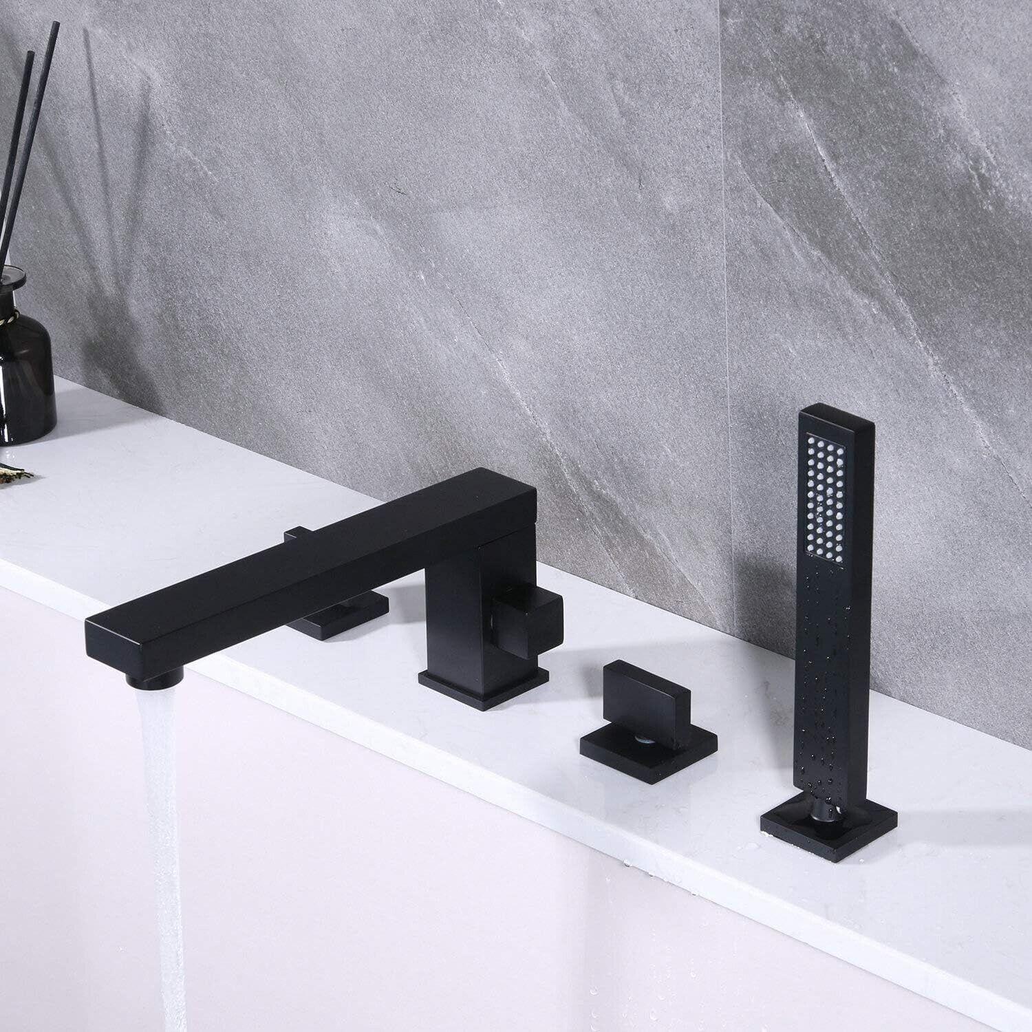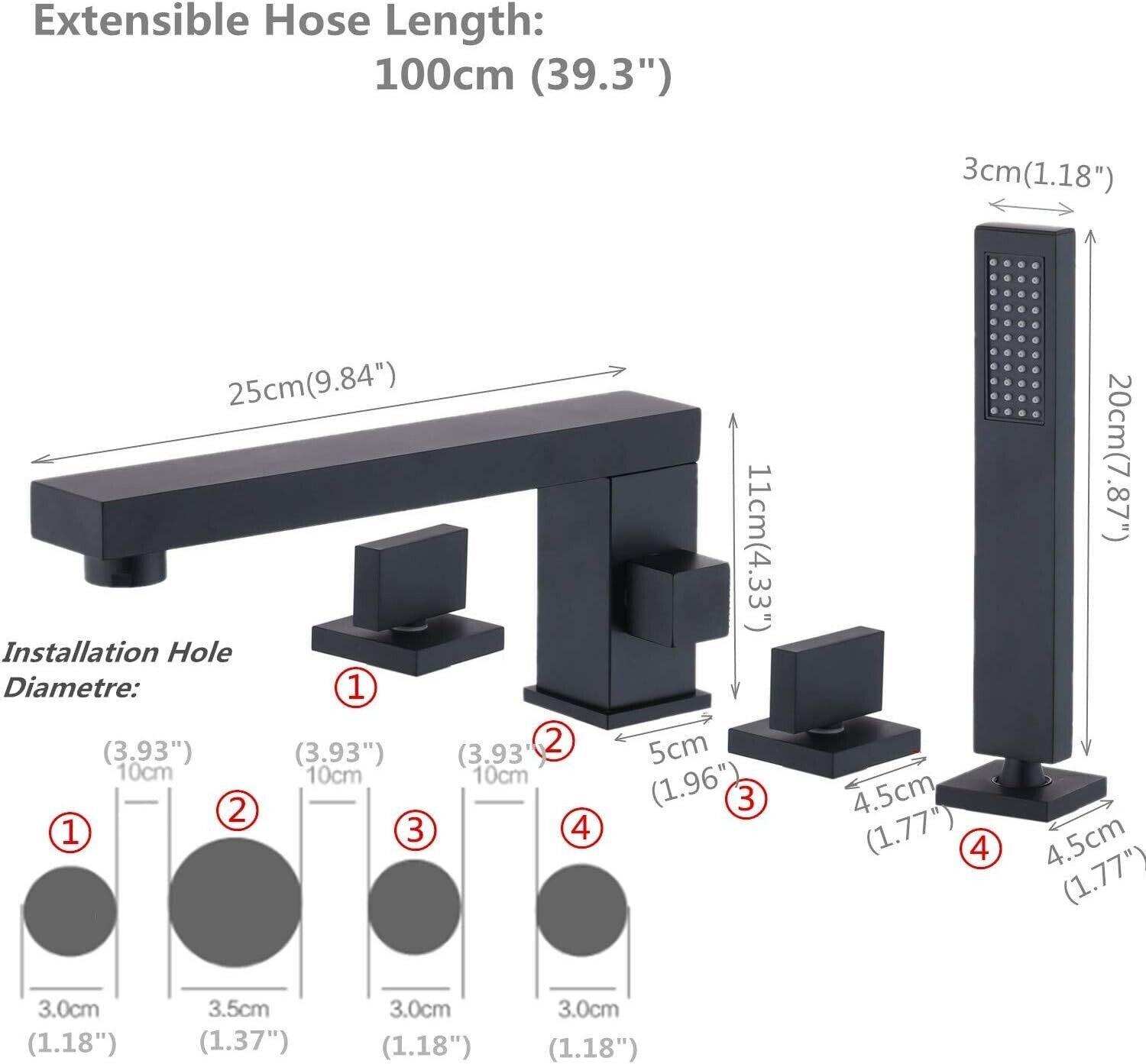 Schwarz Wannenrandarmatur, Wannenbatterie 4-Loch Armatur für Badewanne Badezimmer mit Herausziehbarem Handbrause
