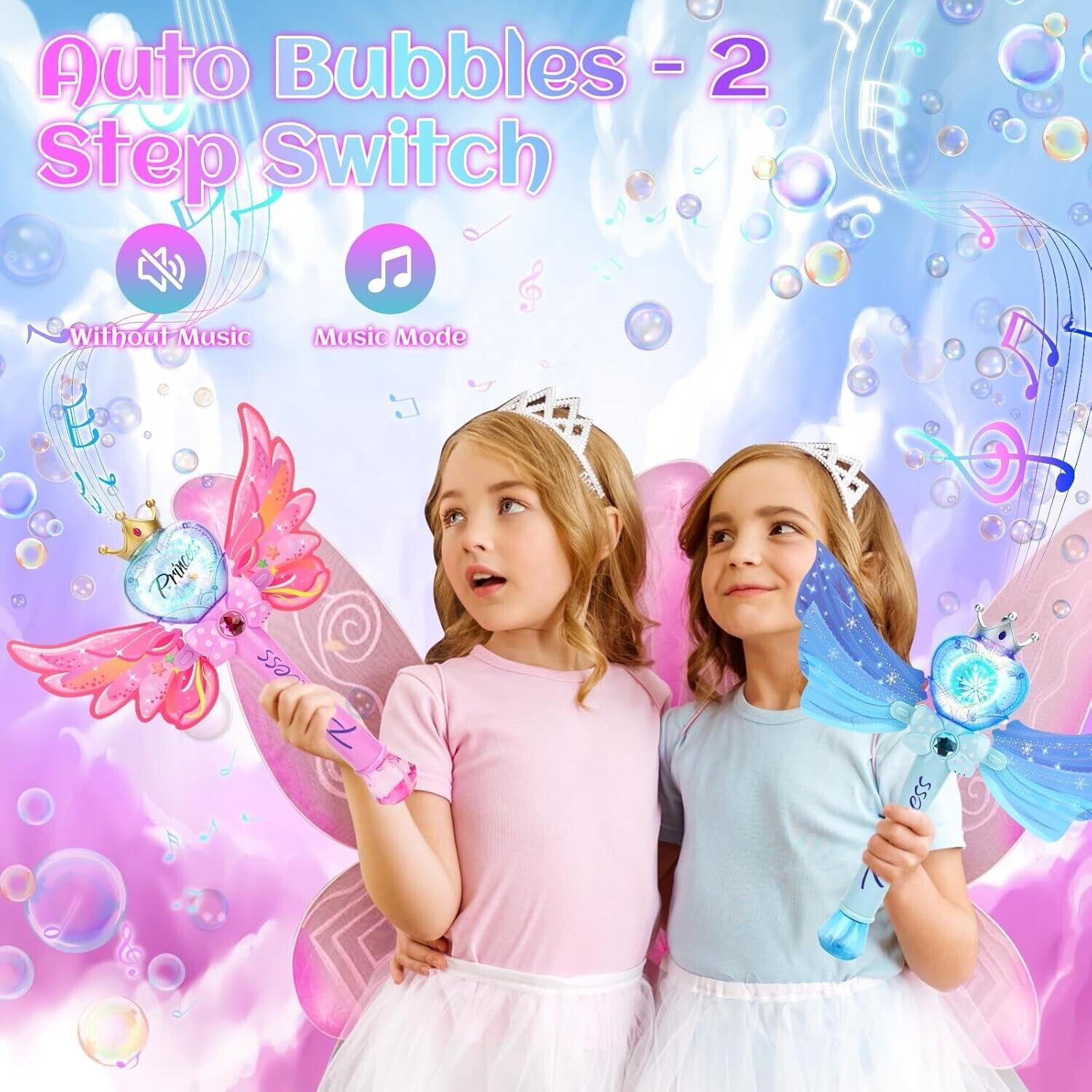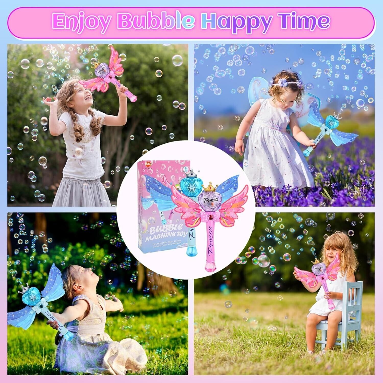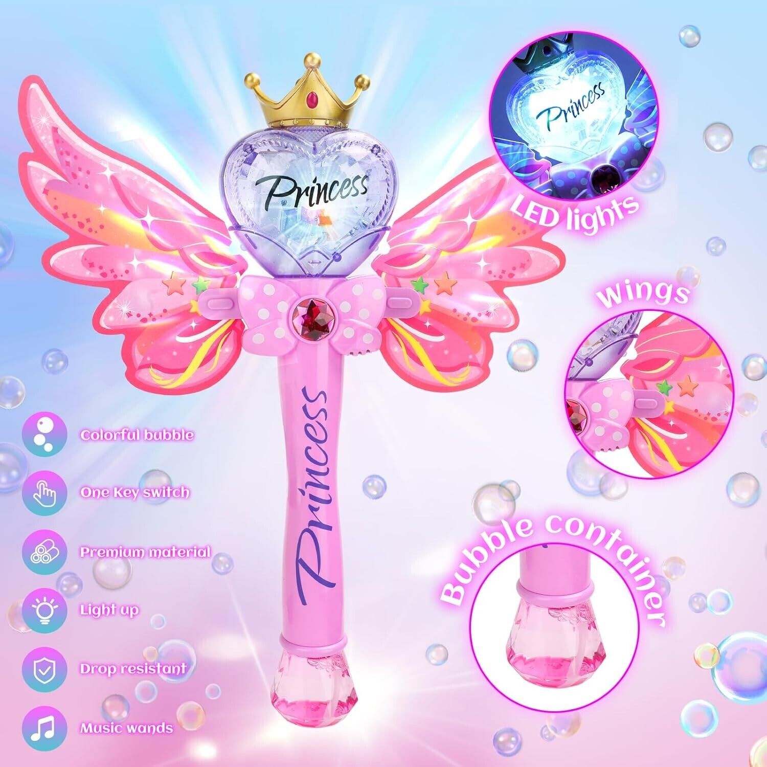 Light Up Seifenblasenmaschine für Kinder - Bubble Wands 2 Pack Led Licht & Musik Prinzessin