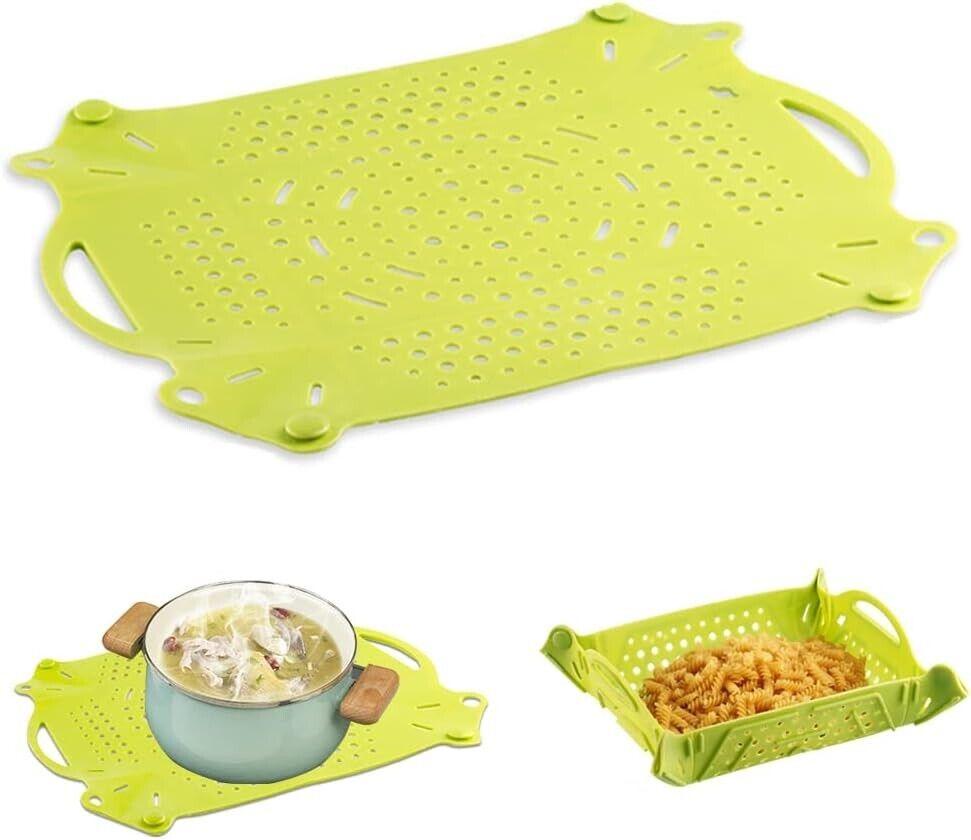 Shackcom 2 in 1 Multifunktional Abtropfmatte aus Silikon Abtropfmatte Geschirr Faltbare Sieb Silikon Küche Abtropfsieb für Obst und Gemüse zum Spülen-Grün
