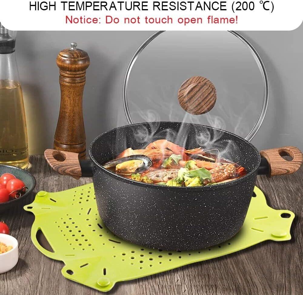 - Hohe Temperaturbeständigkeit:Multifunktionale abtropfmatte ist hoch temperaturbeständig (200℃), verdicktes Material kann den Tisch schützen und verhindern, dass die Hitze auf den Tisch abstrahlt.