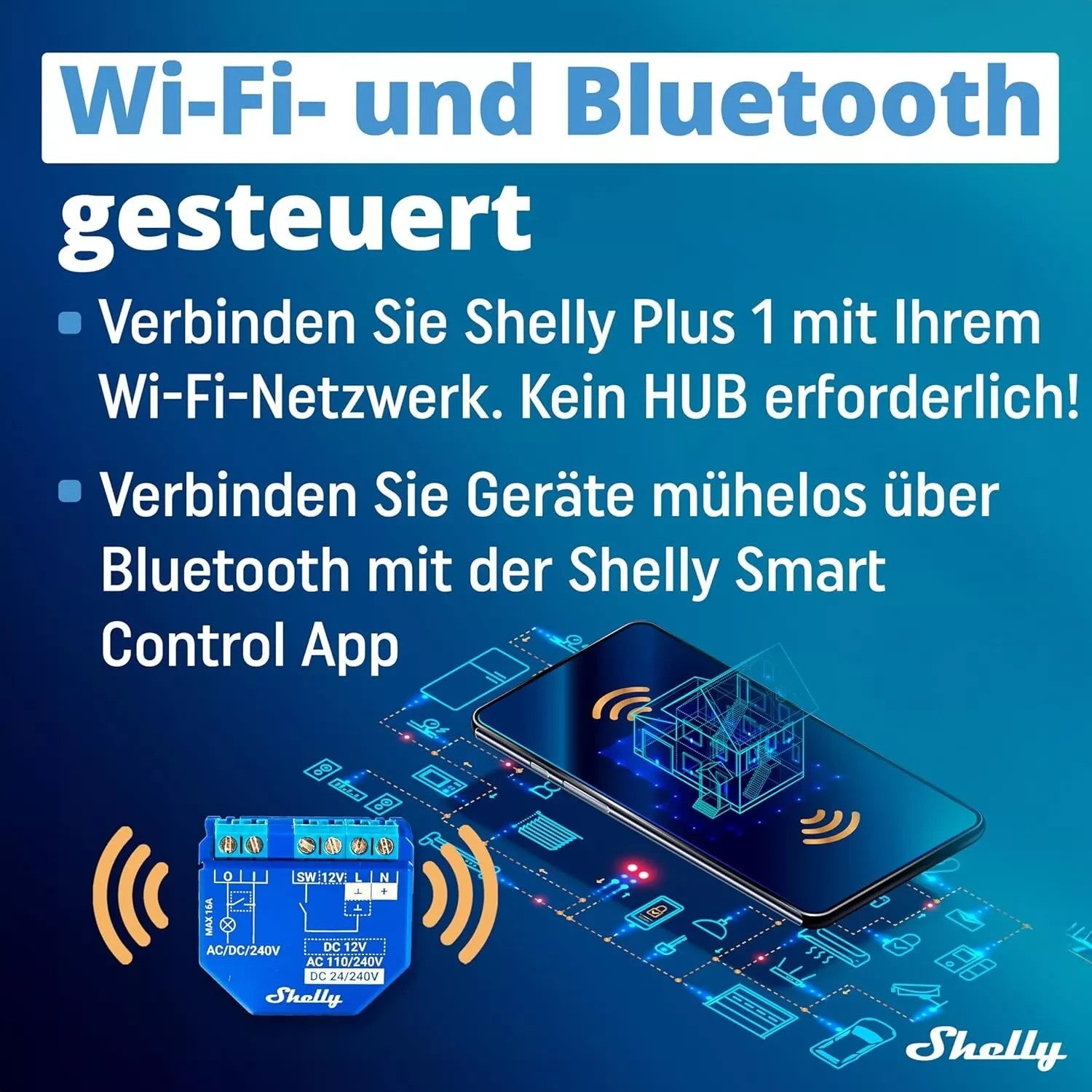 - Shelly Plus 1 ist ein Wlan- und Bluetooth-gesteuerter intelligenter Relaisschalter mit 1 Kanal und bis zu 16 A, der auch als Wlan-Repeater verwendet werden kann. Shelly Plus 1 kann verwendet werden, um alle Haushaltsgeräte, Stromkreise und Bürogeräte individuell zu steuern.