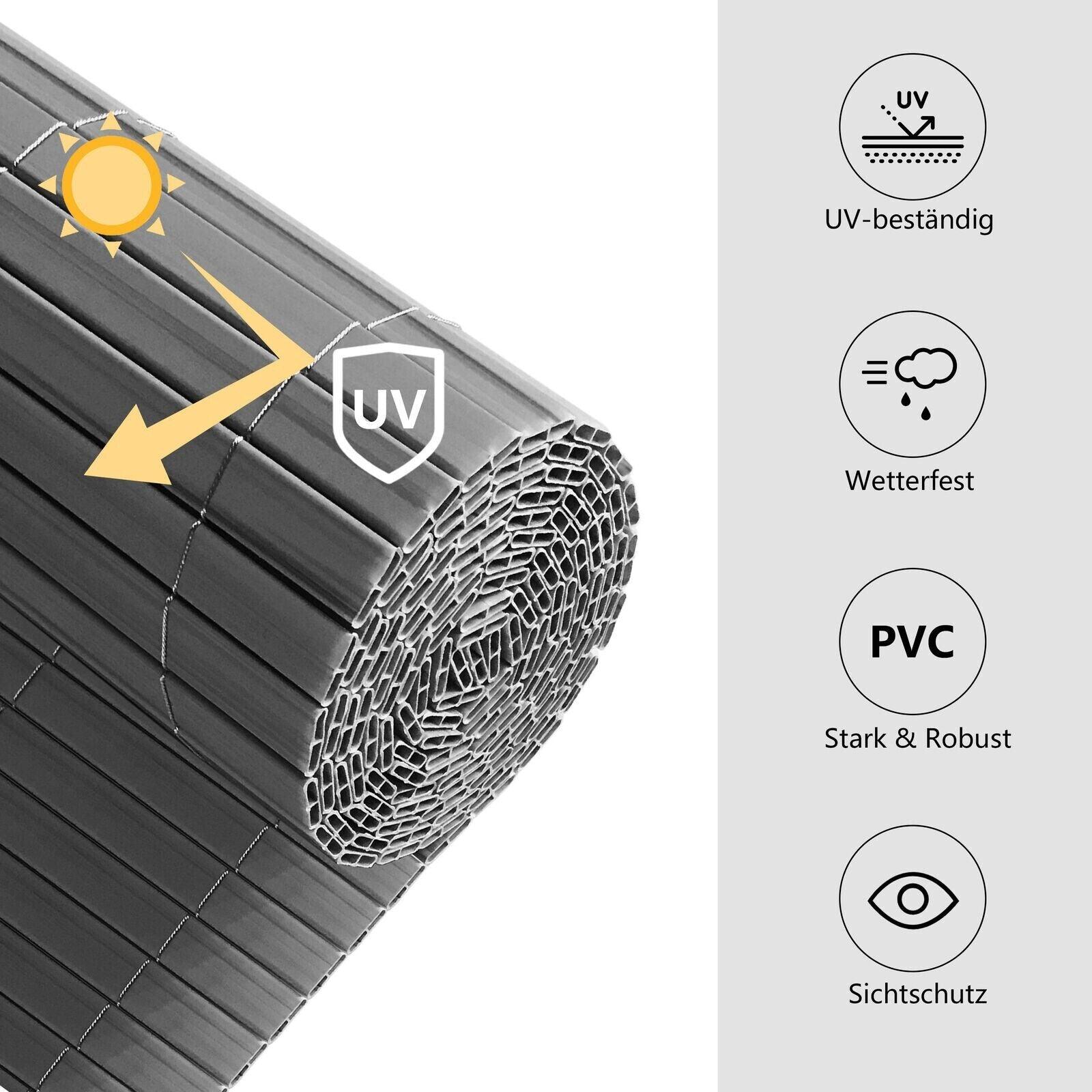 Sichtschutzzaun aus PVC - Grau 1m*3m/100cm*300cm Stabil, Modern Balkon, Garten..