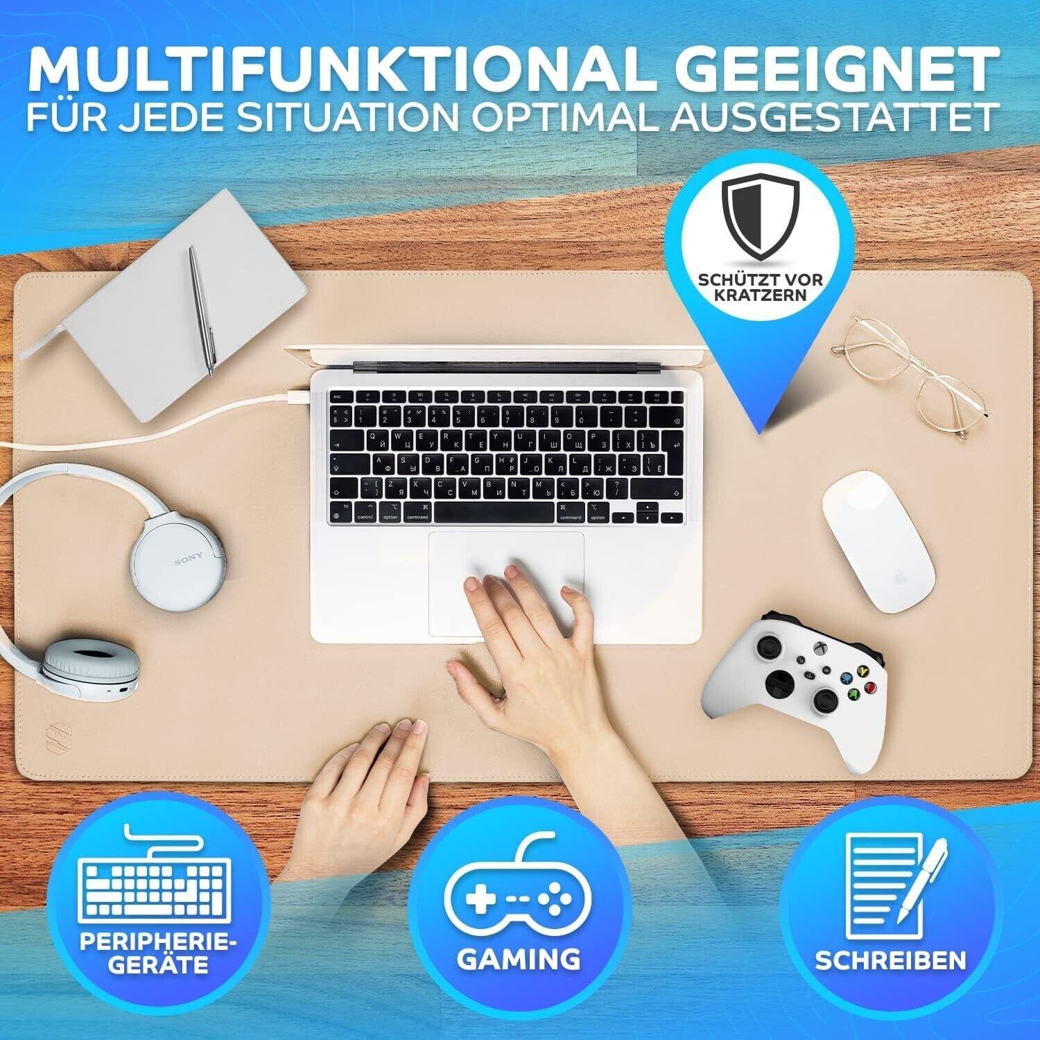 Sidorenko Schreibtischunterlage PU Leder 70x35cm - Beige - Schreibtischunterlage mit genähten Kanten - Rutschfeste Unterlage - Große Schreibtischunterlage - Beach