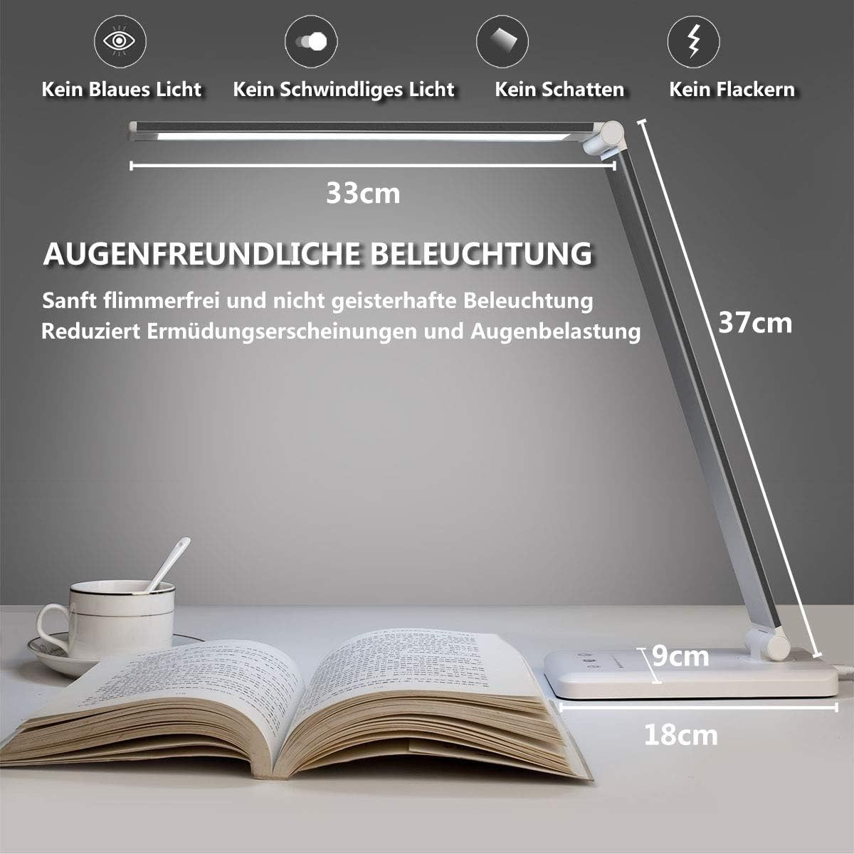 Diese fortschrittliche LED-Schreibtischlampe wurde entwickelt, um Ihnen ein optimales Lichterlebnis zu bieten, das Ihre Augen schont und Ihre Produktivität steigert.