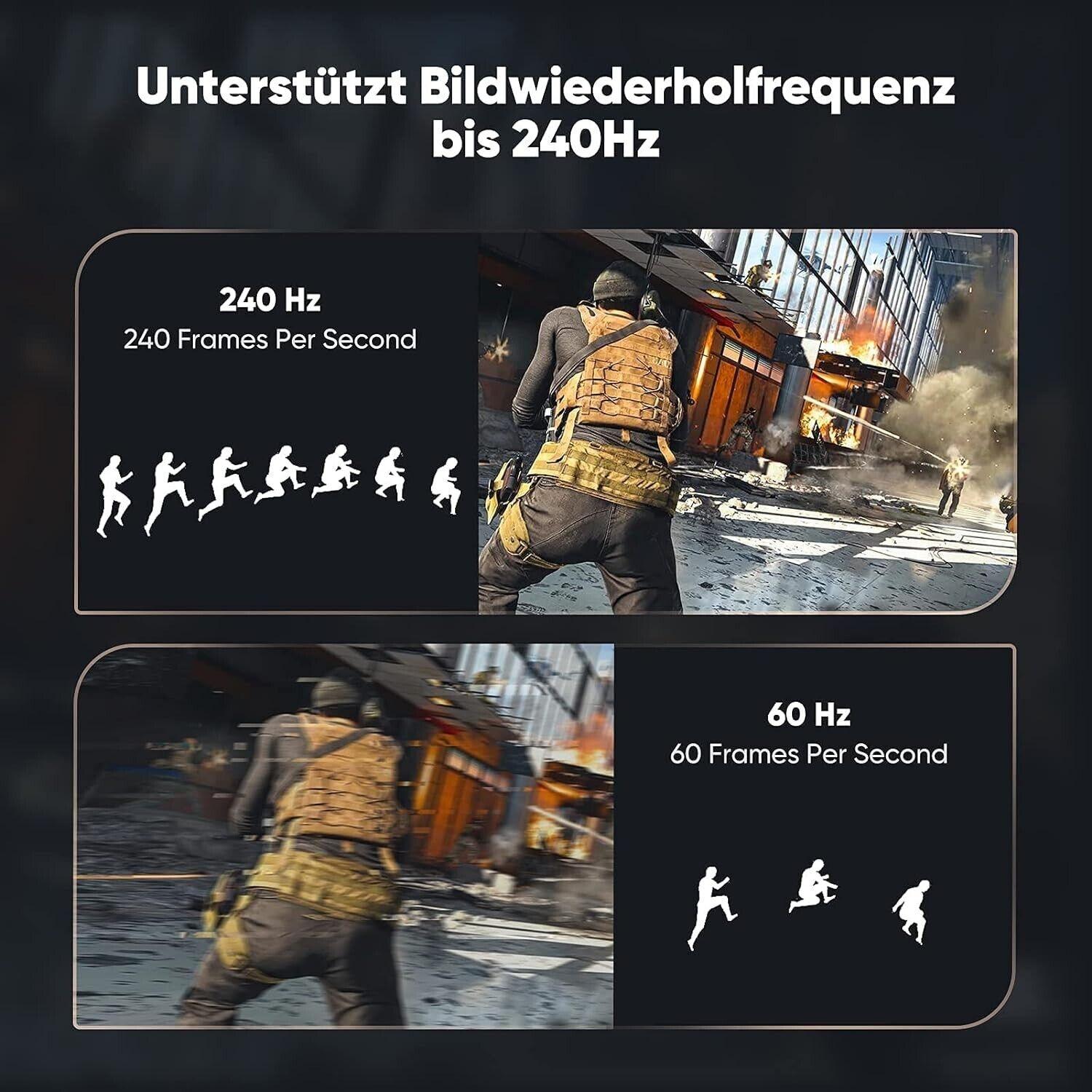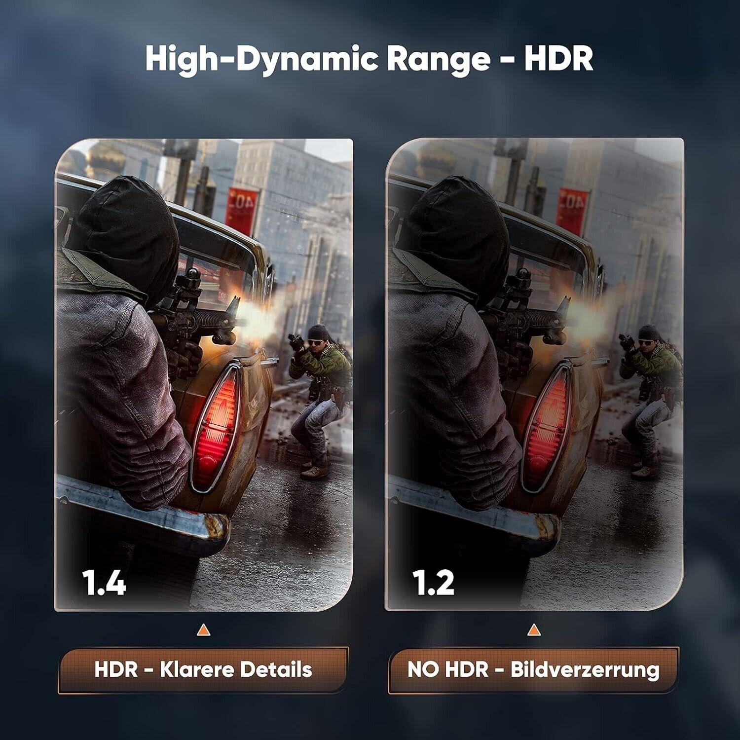 • 【Displayport 1.4 bis zu 32,4 Gbit/s】 - Displayport 1.4 3m Version unterstützt eine Bandbreite von bis zu 32.4Gbps,Im Vergleich zu 21.6Gbps der DP 1.2 Version ist die Übertragung schneller und stärker.Sie eignet sich sehr gut für Teamkämpfe,Es gibt keine Verzögerung und kein Einfrieren bei Multiplayer-Spielen;Mit der Dynamischen HDR Leistung des 8K DP Kabel 1.4 ist das Bild fein und realistisch und vermittelt den Menschen ein beeindruckendes Gefühl.