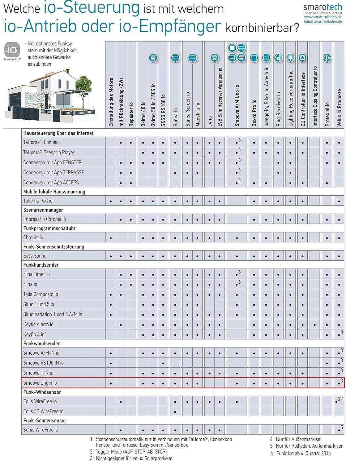 Somfy Smart Home Funkwandsender smoove origin io pure inkl. Rahmen in verschied
